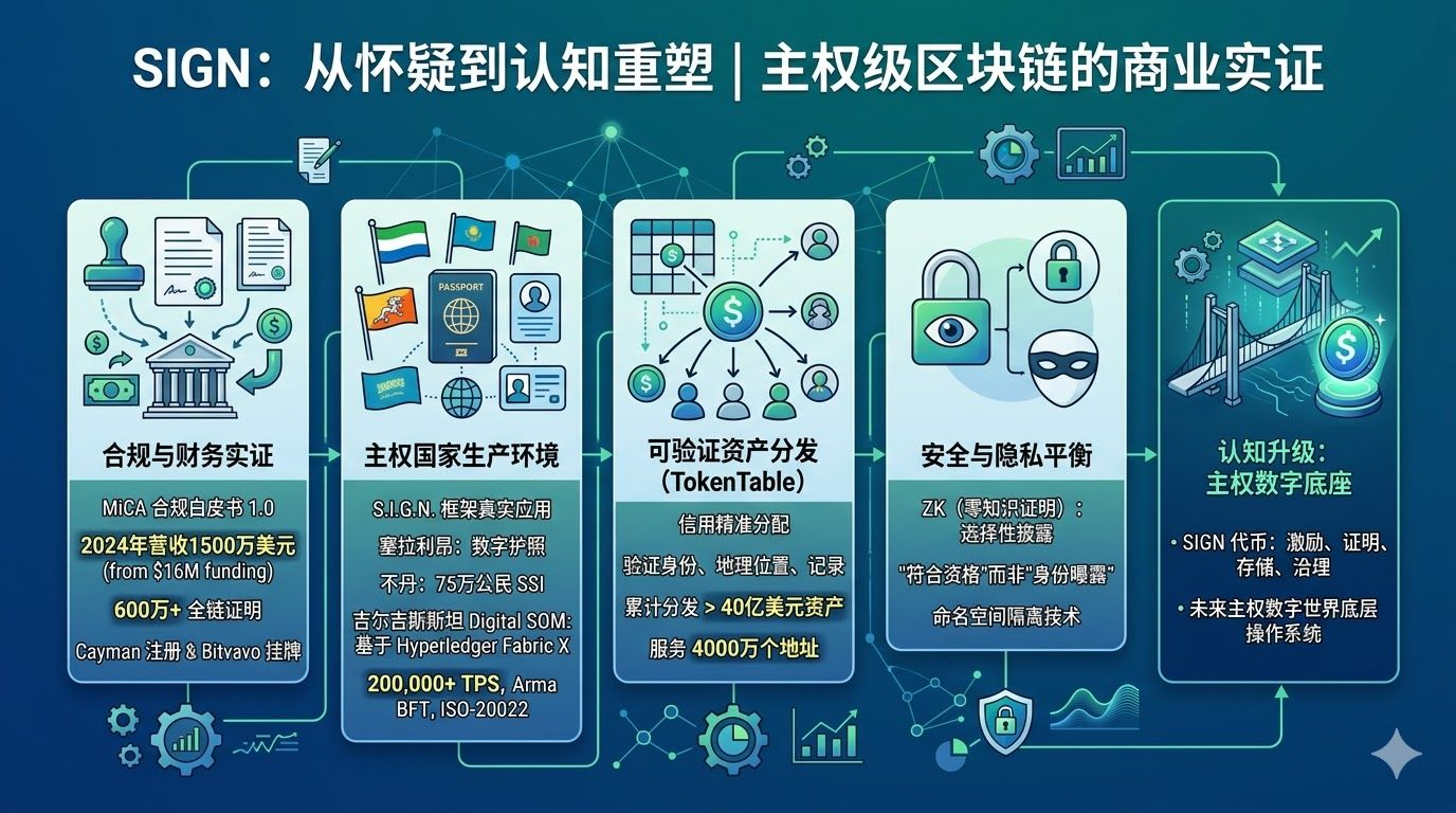 我不喜欢看官网上那些精美的 UI,我更相信给监管机构看的底层数据。在那份 MiCA Whitepaper Version 1.0 里,我看到了这个项目最真实的财务肌肉。我本以为这又是一个靠融资过日子的团队,但数据打了我的脸:Sign Foundation 虽然拿了 1600 万美元的融资,但在 2024 年,他们的业务收入就已经达到了 1500 万美元。更夸张的是,到 2025 年底,他们已经处理了超过 600 万条全链证明 (Attestations)。这不是那种靠预期活着的项目,而是一个已经跑通了现金流的商业实体。它在开曼群岛的合规注册和在 Bitvavo 这种欧洲合规交易所的挂牌,向我传递了一个极其强烈的信号:它不是在玩币,它是在做生意。