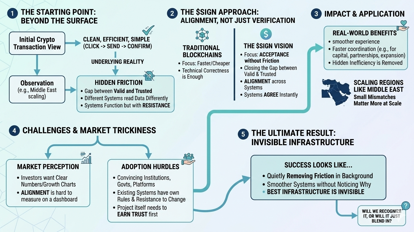 Se $SIGN funziona davvero come dovrebbe, probabilmente le persone non ne parleranno nemmeno molto. Non sarà rumoroso. Non sarà appariscente. Rimuoverà silenziosamente l'attrito dallo sfondo fino a quando le cose non iniziano a sembrare più fluide senza che nessuno noti perché.