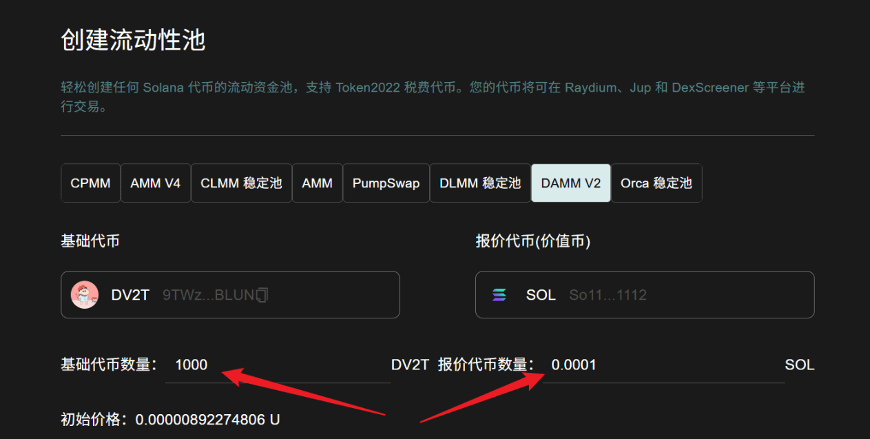 Utilizzando la piattaforma GTokenTool, non è necessario scrivere codice complesso, puoi creare pool di liquidità DAMM V2 sulla rete principale di Solana in pochi minuti.