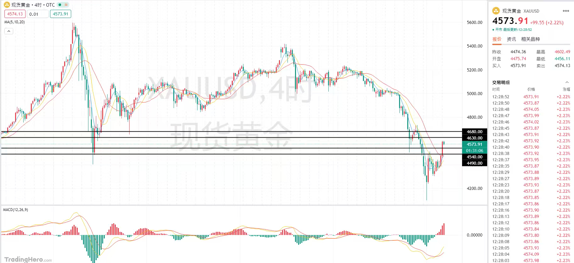 A livello di 4 ore, le medie mobili dell'oro mostrano una disposizione rialzista, l'energia per il rimbalzo continua a essere rilasciata, attorno ai 4420 dollari si è formata una solida area di supporto a breve termine, che è riuscita a recuperare rapidamente dopo vari test. Lo spazio di discesa sottostante è fondamentalmente bloccato. Attualmente, il prezzo dell'oro si sta avvicinando gradualmente a 4600 dollari, questo punto è sia il punto di rottura precedente che un importante livello di pressione psicologica; dopo la rottura, lo spazio per l'ulteriore aumento si aprirà, anche se a breve termine potrebbe esserci pressione, si tratta solo di una fase di accumulo durante il processo di rimbalzo, che non cambierà la tendenza complessivamente forte. Guardando a oggi, il prezzo dell'oro continua a oscillare verso l'alto e a funzionare in modo forte, è molto probabile che si misuri la pressione tra 4600 e 4650 dollari, con la tendenza che si concentra principalmente sull'accumulo durante il ritracciamento e un aumento costante. In sintesi, per quanto riguarda le operazioni a breve termine di oggi, l'anziano Yu consiglia di concentrarsi principalmente sull'acquisto in caso di ritracciamento, con vendite a scopo di rimbalzo come supporto, prestando particolare attenzione alla resistenza tra 4630 e 4680 e al supporto tra 4540 e 4490.
