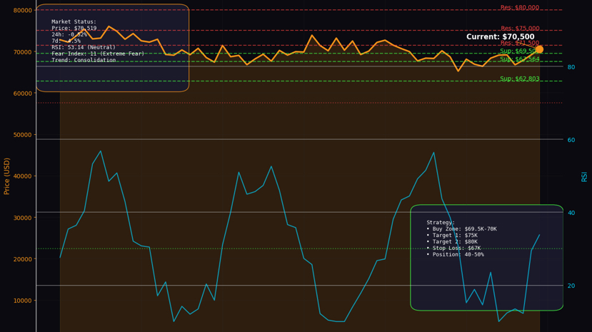 • 强阻力位:71,500美元(近期多次测试未果)、75,000美元(心理关口)、80,000美元(RMP预期兑现后的目标位)