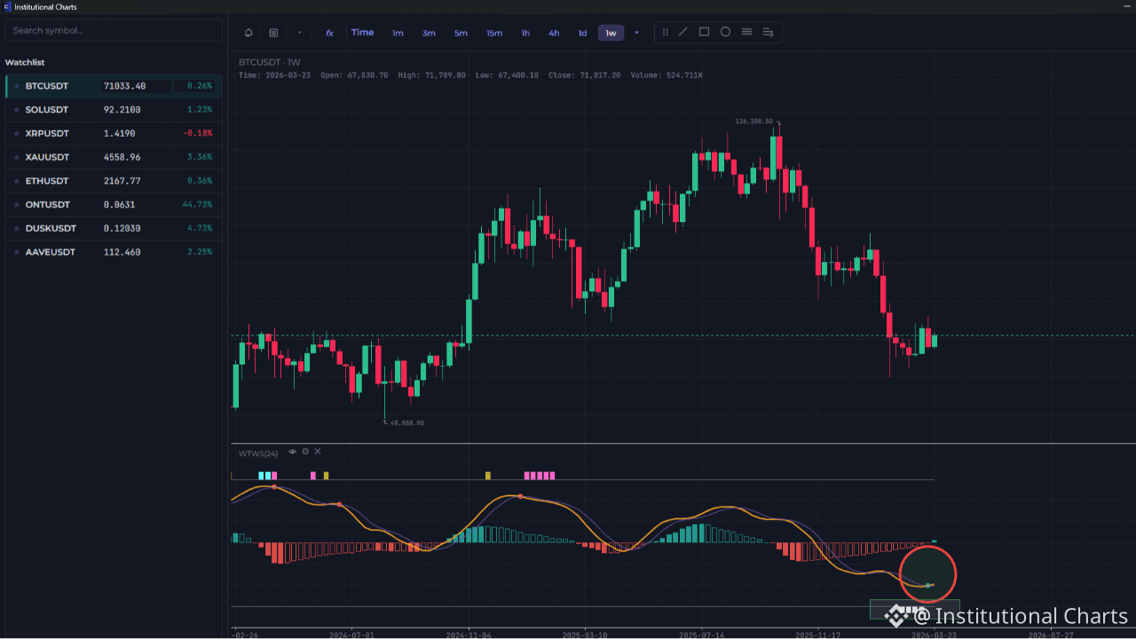 Se guardi il grafico Settimanale, non stiamo solo vedendo un "rimbalzo." Stiamo vedendo un cambiamento strutturale che ha storicamente preceduto i movimenti più parabolici nella storia delle criptovalute.