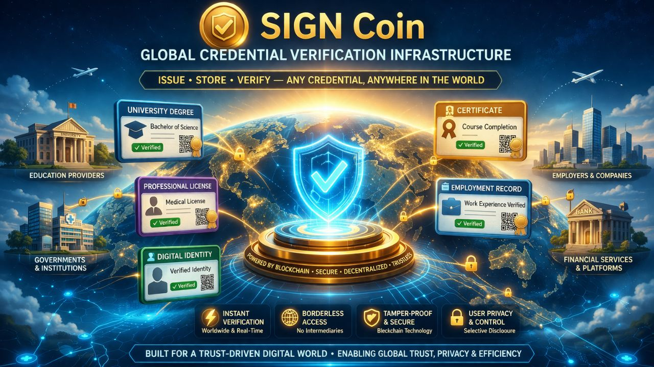 Da una prospettiva più ampia, $SIGN Coin's infrastruttura globale di verifica delle credenziali è più di una semplice soluzione tecnica: è una base per un'economia digitale guidata dalla fiducia. Semplifica i processi di assunzione, semplifica la conformità nelle industrie regolamentate, supporta l'istruzione e l'occupazione transfrontaliere e consente un'integrazione senza soluzione di continuità nei servizi finanziari e digitali. Colmando il divario tra fiducia, privacy ed efficienza, SIGN Coin si posizione come un abilitante chiave di un futuro in cui la verifica è istantanea, sicura e universalmente riconosciuta.