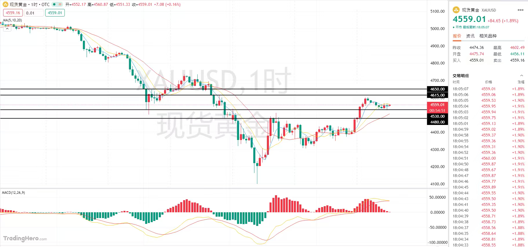 Mercoledì durante il giorno, l'oro internazionale ha mostrato un chiaro rimbalzo, tornando vicino ai 4600 dollari, e i compratori hanno iniziato a riprendersi. In precedenza, l'oro era sceso bruscamente, toccando un minimo di circa 4100 dollari, il livello più basso in quasi quattro mesi, con un significativo calo settimanale, principalmente a causa delle oscillazioni tra la situazione geopolitica e le aspettative politiche.