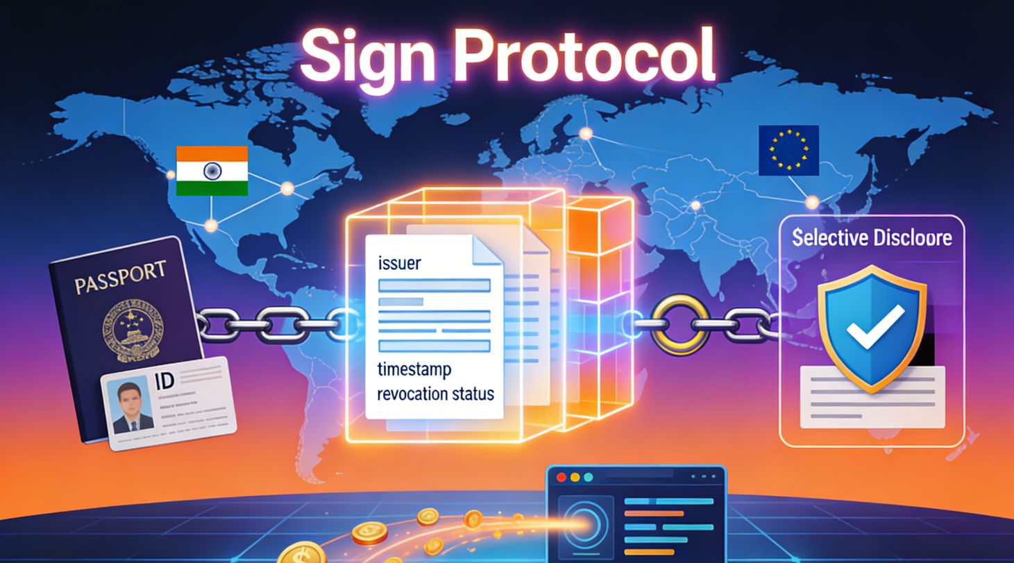 Sign的解法是:在链上把凭证定义成统一的结构,附带发行方、时间戳、规则版本、撤销状态。你不需要每个国家都承认你一次,你只需要证明你符合某个标准。选择性披露更绝——我只告诉你我够格,不告诉你我身份证号、银行卡号、家庭住址,隐私合规一步到位。