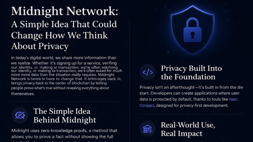 The idea behind Midnight is not complicated, even if the technology powering it is advanced. It starts with a simple question: why should someone reveal all their personal information just to prove one small detail? Instead of following the usual path of complete transparency or total privacy, Midnight tries to build something in between. It uses zero-knowledge proofs to allow people to confirm that something is true without exposing all the data behind it. This means you can prove a fact without revealing your full identity or personal history. It’s a small shift in thinking, but it has big implications.