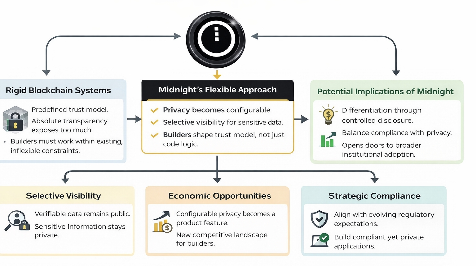 Midnight introduces a more nuanced approach, where visibility becomes selective rather than absolute. This feels closer to how trust works in the real world. Systems don’t need to reveal everything to be credible, but they do need to prove that certain conditions are met. By separating what must be verifiable from what must remain private, Midnight gives builders a new layer of control. That flexibility opens doors, but it also introduces responsibility. If designed poorly, applications could become technically sound yet difficult to trust or understand. The power to control information also requires thoughtful design around usability and transparency where it matters.