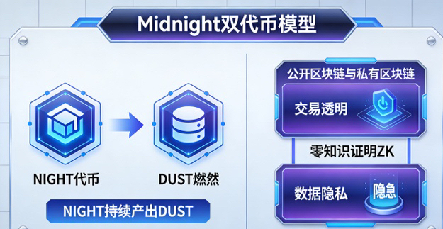 Prima di tutto, @MidnightNetwork cosa fa esattamente il progetto? Midnight non è semplicemente una "moneta della privacy", ma una chain partner basata su Cardano, la tecnologia centrale è la prova a conoscenza zero (ZK-Snarks), che realizza "privacy programmabile". In parole semplici: divide la blockchain in due stati, pubblico e privato. I dati sensibili (come importi, identità, metadati) possono essere nascosti, ma i contratti intelligenti possono comunque funzionare normalmente, consentendo agli sviluppatori di creare DApp di privacy conformi. È adatto a scenari finanziari, sanitari e DeFi che richiedono sia privacy che supervisione — non è completamente anonimo, ma implica una divulgazione selettiva "razionale". Il modello a doppio token è un punto saliente: NIGHT è un token di governance + valore pubblico, con fornitura fissa (24 miliardi), possederlo genera automaticamente DUST (un "carburante" non trasferibile e consumabile) per pagare le commissioni di transazione per la privacy. Il tuo capitale NIGHT rimane intatto, si basa sull'"energia" generata dalla posizione per utilizzare la rete, evitando la pressione di vendita tradizionale delle blockchain pubbliche "spendi un po' e perdi un po'".