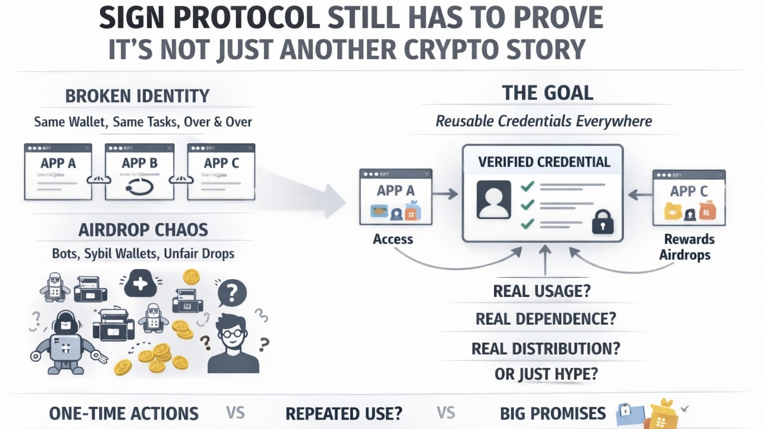 The frustrating part is that the problem Sign Protocol is aiming at is real. Crypto does need a better way to handle identity. It does need a better way to do token distribution without turning every launch into a bot festival. It does need a system where proof can move across apps without making users repeat themselves forever. All of that is true. None of that is hype. The need is real.
