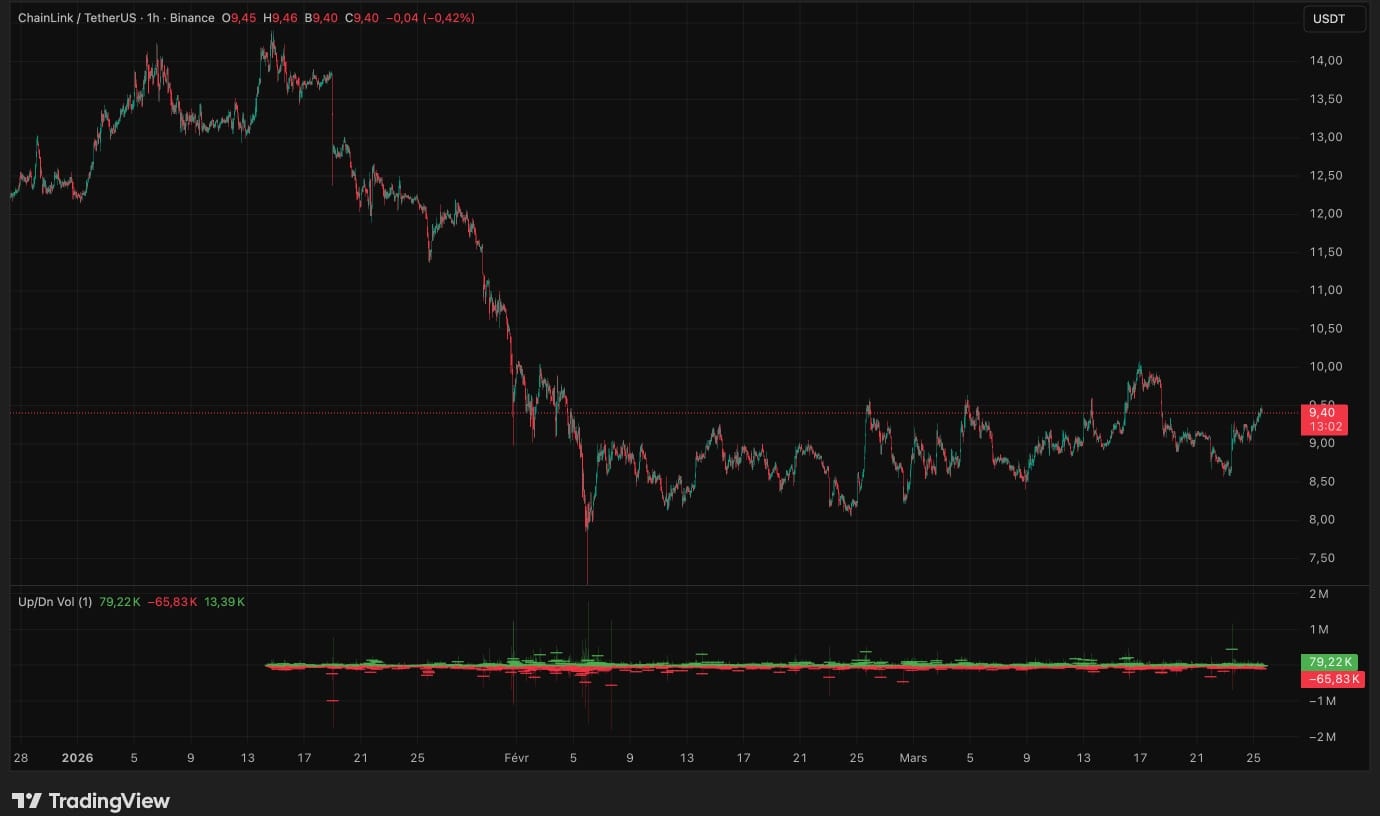 Più in generale, la copertura del CCIP nei circoli bancari e di gestione degli asset evidenzia progetti pilota in cui grandi banche e gestori di asset utilizzano Chainlink per trasferire azioni di fondi tokenizzati e stablecoin attraverso catene pubbliche e private, inclusi esperimenti da parte di ANZ e SBI Digital Markets per regolare pagamenti transfrontalieri e gestire abbonamenti. In quell'ambiente, il livello attuale di prezzo di LINK intorno a $9–$10, unito a centinaia di milioni di dollari in volume giornaliero e a una struttura di consolidamento pluriennale intorno alla regione di supporto di $14, lo posiziona come una scommessa liquida legata all'infrastruttura sullo scaling della tokenizzazione e dell'attività cross-chain piuttosto che un commercio di momentum di breve durata.