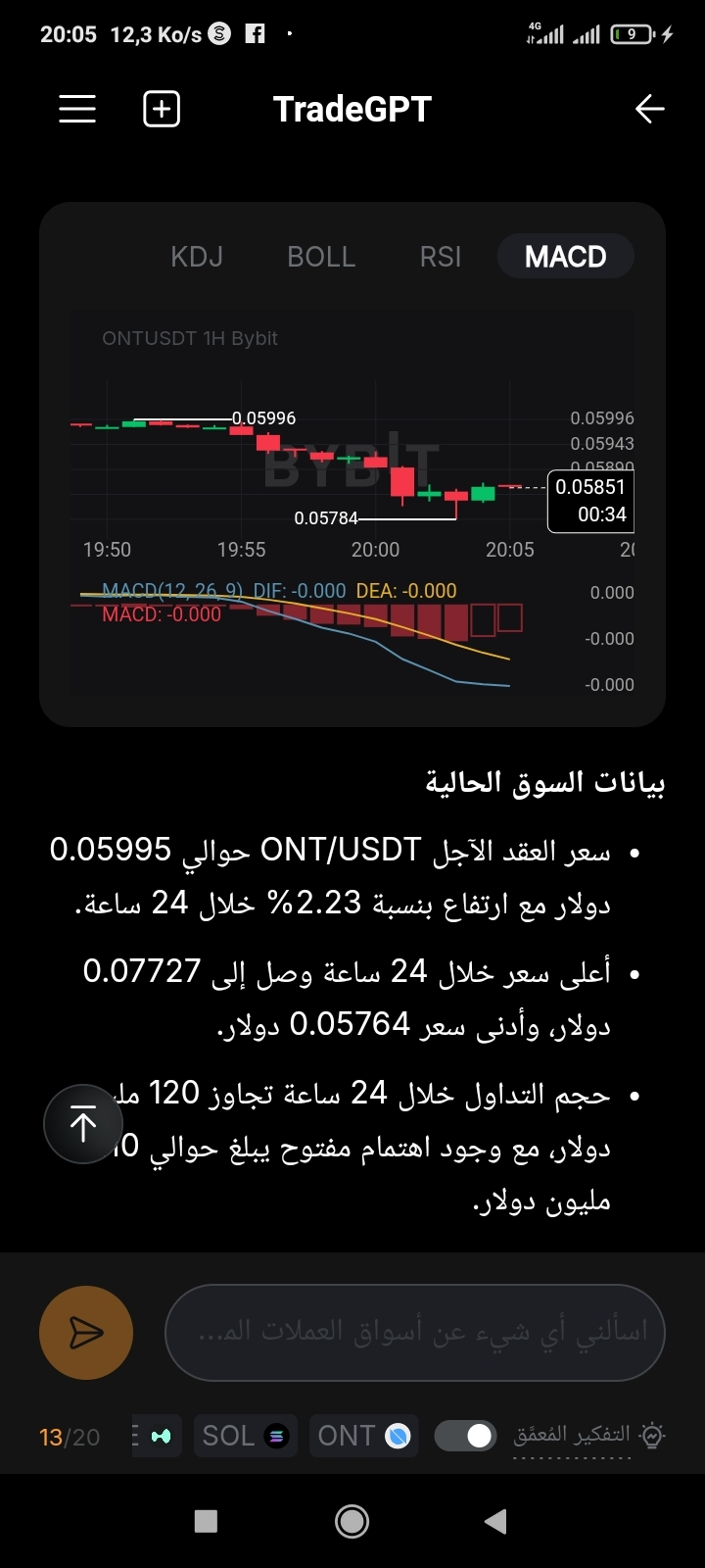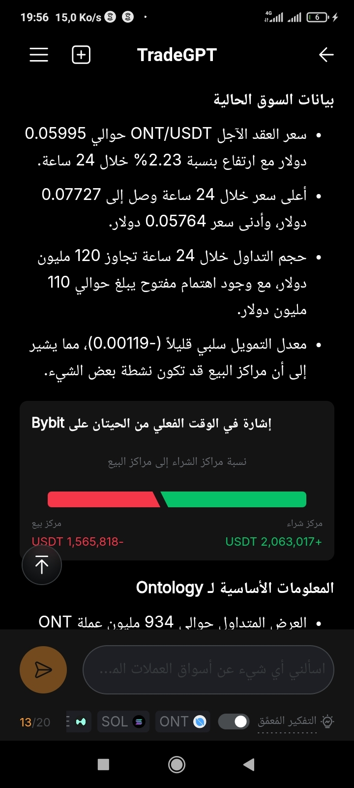 1. الوضع الحالي للسوق (ONT/USDT)