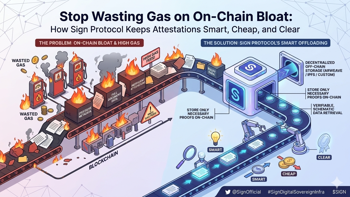 Ecco un'analisi approfondita su come il trasferimento di dati pesanti risolve questo problema e perché l'infrastruttura di Sign Protocol sta guidando il cambiamento nel rendere le attestazioni on-chain scalabili, verificabili ed economicamente sostenibili.