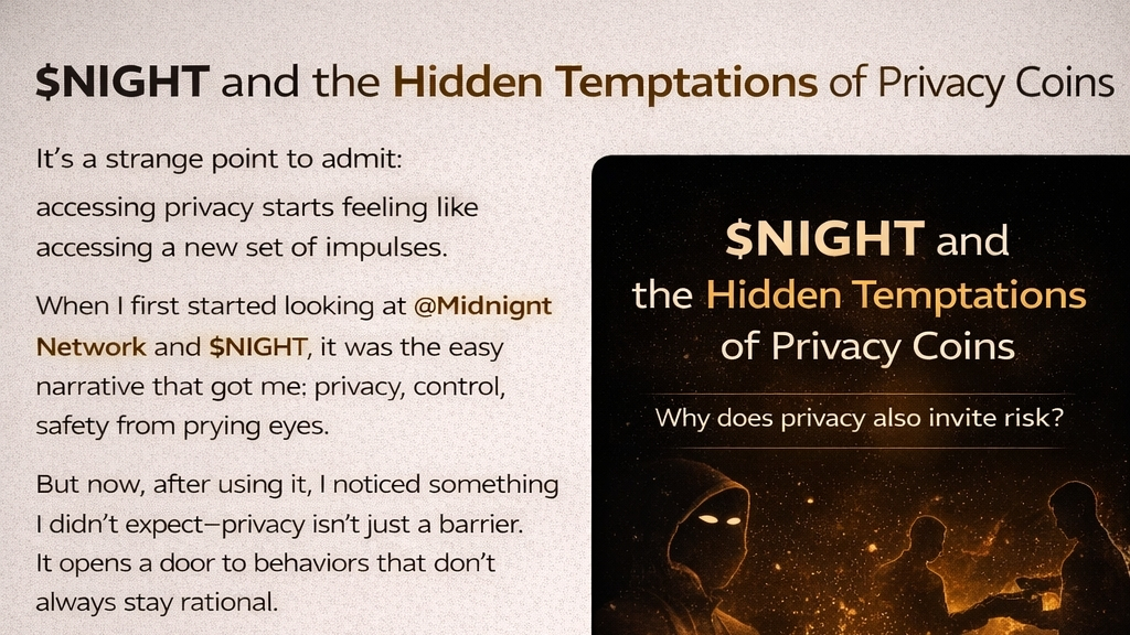 When I first came across @MidnightNetwork and $NIGHT, I saw it in a very straightforward way — a layer that keeps things hidden, secure, and out of reach from unnecessary exposure. Especially in a market where everything feels watched, that sounded like relief.