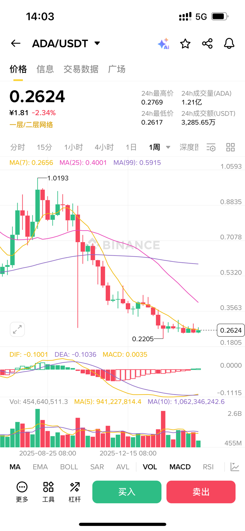 Il prezzo attuale è vicino a 0.2624 USDT, è sceso del 2.34% nelle ultime 24 ore, con un volume di scambi di oltre trenta milioni, non è attivo, ma non si può nemmeno dire che sia deserto. Dal punto di vista degli indicatori tecnici, il DIF e il DEA del MACD sono ancora sotto l'asse zero, senza una chiara direzione, e il volume degli scambi sta gradualmente diminuendo, sia MA(5) che MA(10) stanno scendendo. Tutti i segni puntano alla stessa conclusione: il mercato è indeciso a questo punto.