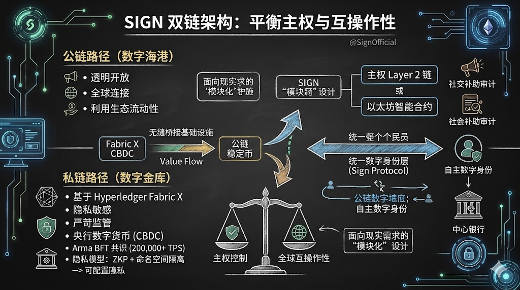 Recentemente ho esaminato attentamente il white paper di @SignOfficial , e un design tecnico mi ha colpito particolarmente: la sua architettura a doppia catena. Molti progetti sul mercato parlano solo dell'apertura delle blockchain pubbliche o solo della conformità delle blockchain consortili, ma SIGN ha scelto un percorso più complesso, ma più adatto alle esigenze reali degli stati sovrani, fornendo due infrastrutture parallele.