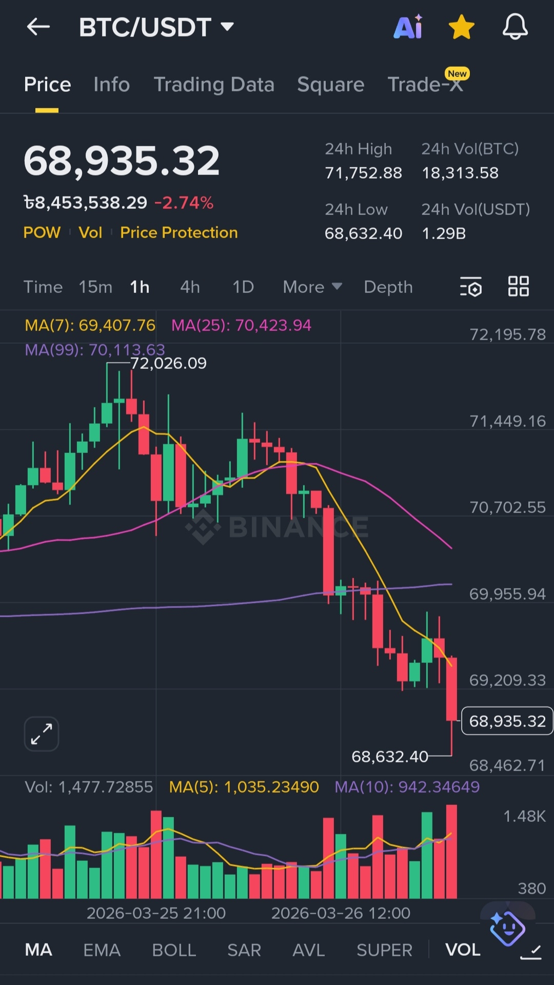 The bounce from ~68.6K is not backed by strong volume