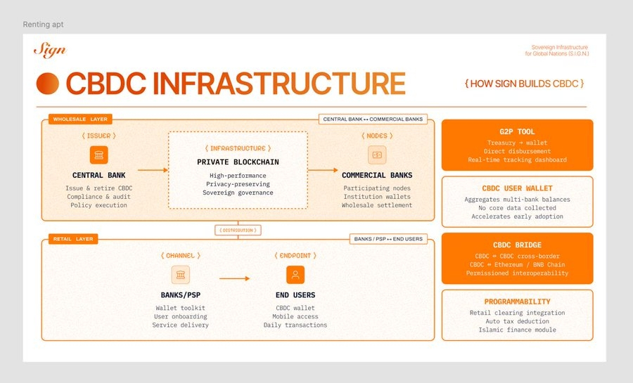 Sign also integrates with each country’s existing RTGS system (Real-Time Gross Settlement). Most countries have already built RTGS infrastructure for large-value interbank settlement. Connecting the CBDC wholesale layer to that existing infrastructure means digital currency flows work alongside the existing financial system rather than replacing it from scratch. The result is a system that feels familiar in structure, but radically more capable in function.
