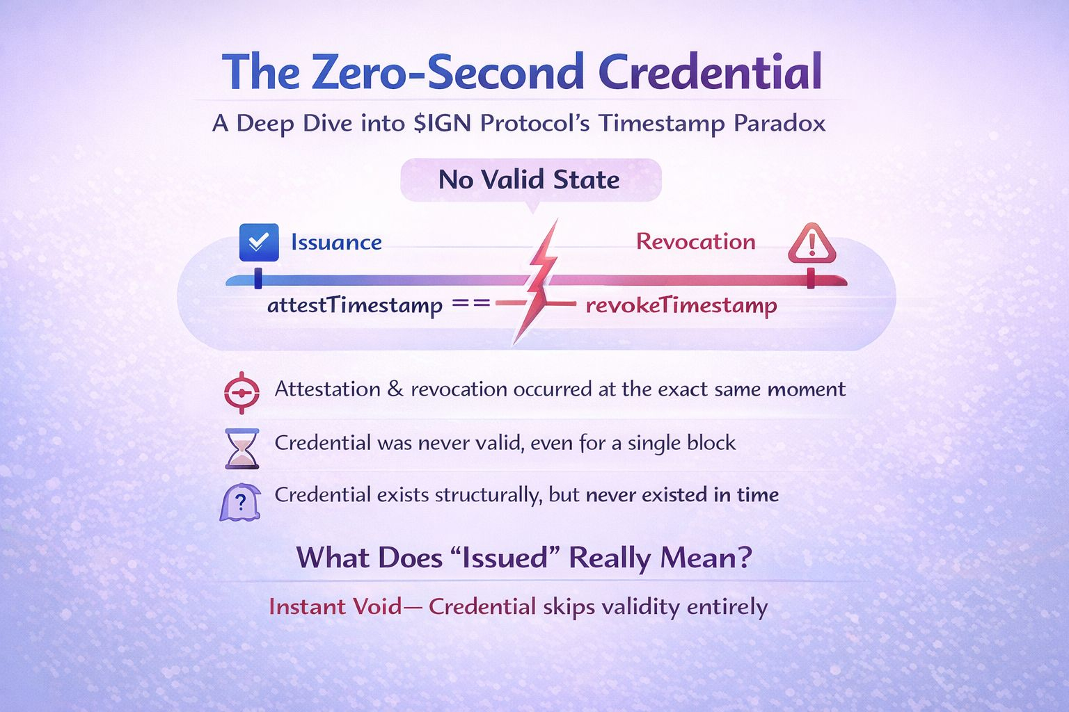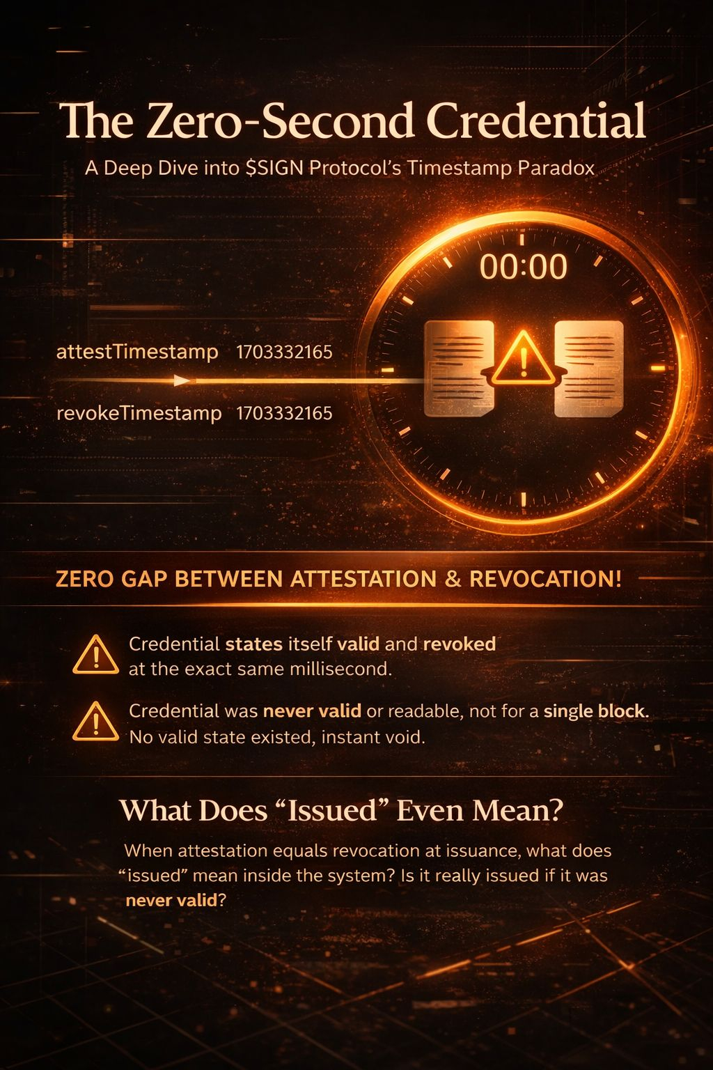 This is where $SIGN really starts to matter. It only matters if the protocol can actually distinguish between an attestation where attestTimestamp == revokeTimestamp and one that was actually valid before being revoked later. Because right now, both resolve the exact same way.