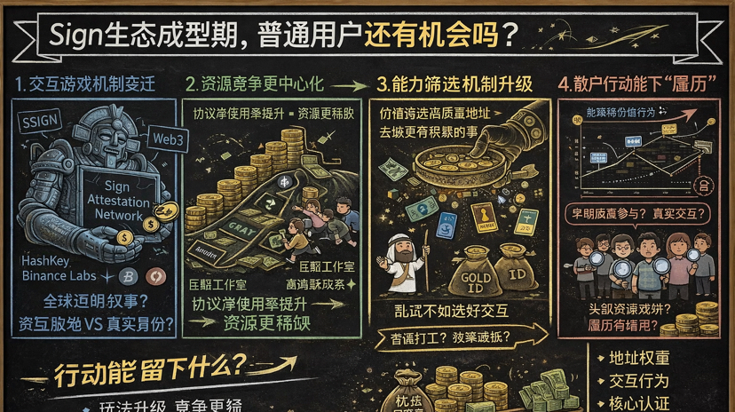 所以问题不再是“做多少”,而是“做得有没有意义”。在生态逐渐成型的阶段,散户想要不被边缘化,关键不是拼命参与,而是让自己的每一步,都能在这个体系里留下痕迹。#Sign地缘政治基建