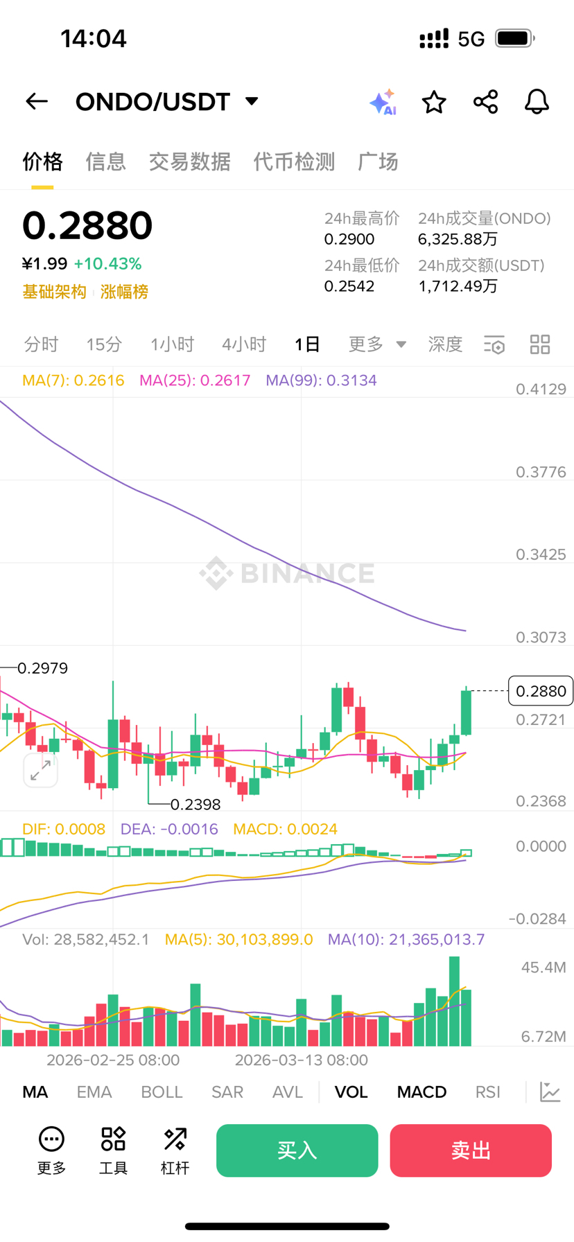 Non appena la notizia è stata diffusa, ONDO è aumentato, con un incremento di quasi l'8% in 24 ore, con il prezzo tornato intorno a 0,288 dollari.