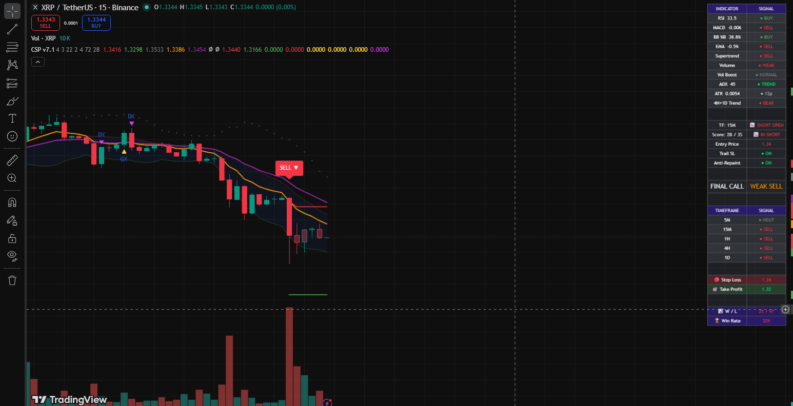 XRP is currently showing a high-volatility structure as it tests a critical support zone. After a recent pullback from the $1.60 March highs, the price is hovering around the $1.33 – $1.36 area. Bulls are fighting to hold the line, while a surge in Open Interest suggests a potential short squeeze or a sharp move is brewing.