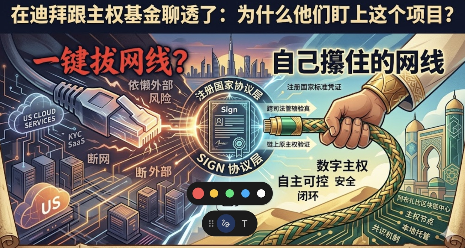 上个月在迪拜跟一个做主权基金数字基建的朋友喝咖啡,聊了三个小时,最后他撂下一句话:“我们现在看任何一个Web3项目,先问一个问题——如果明天美国把云服务掐了,你这套东西还能不能跑?”