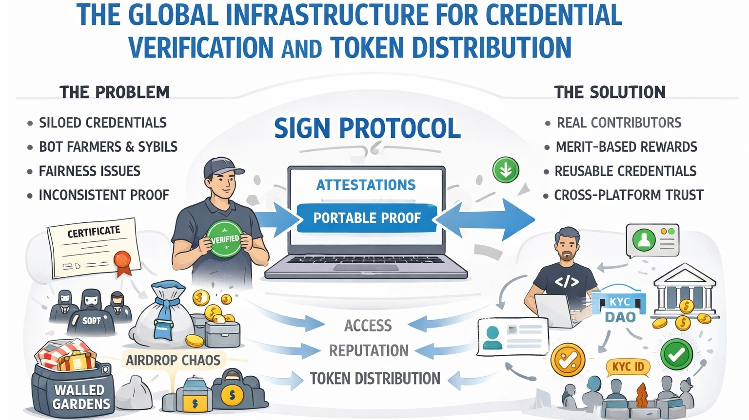 Most of this stuff is a mess. That is the first thing. Crypto keeps talking about trust, identity, rewards, reputation, community, all that big shiny language, but the actual systems underneath are usually patched together, easy to game, and annoying to use. People get rewarded for farming. Bots slip through. Real contributors get ignored. Credentials are stuck inside random platforms. And every new project acts like it is inventing the future when half the time it cannot even figure out who should get a token drop without making a complete mess of it.