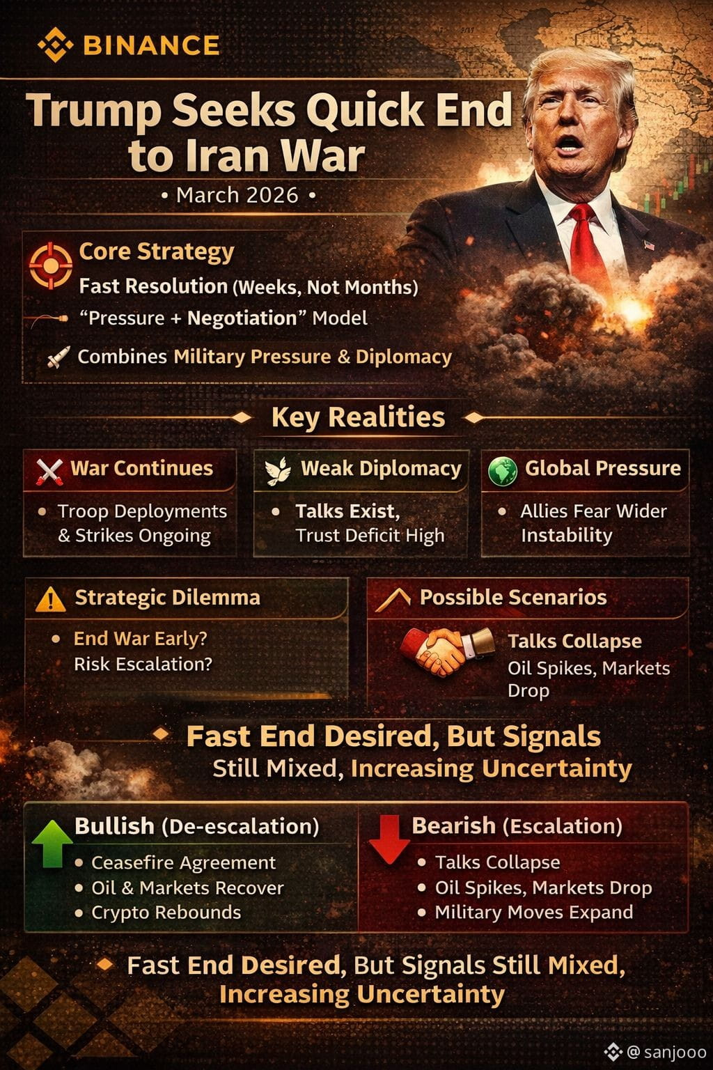 End war early → Leaves key issues unresolved (Hormuz, Iran power) �$BNB