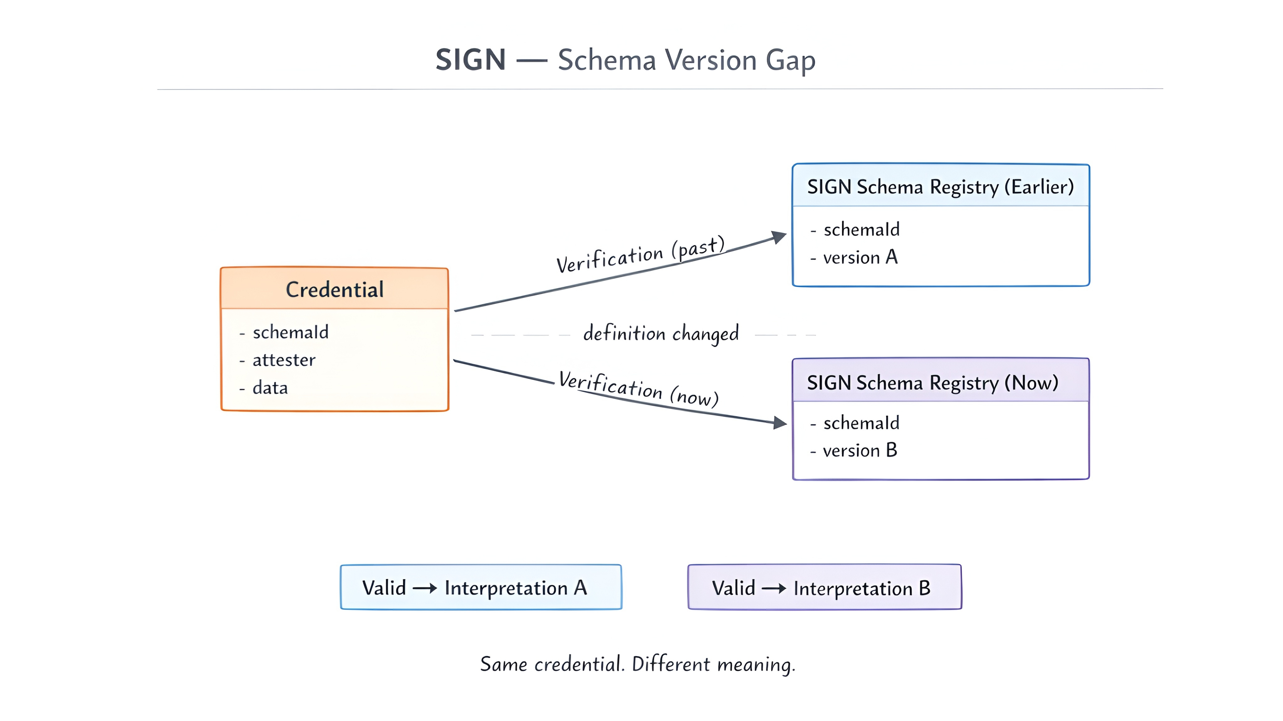 Because once meaning can change without the credential changing...