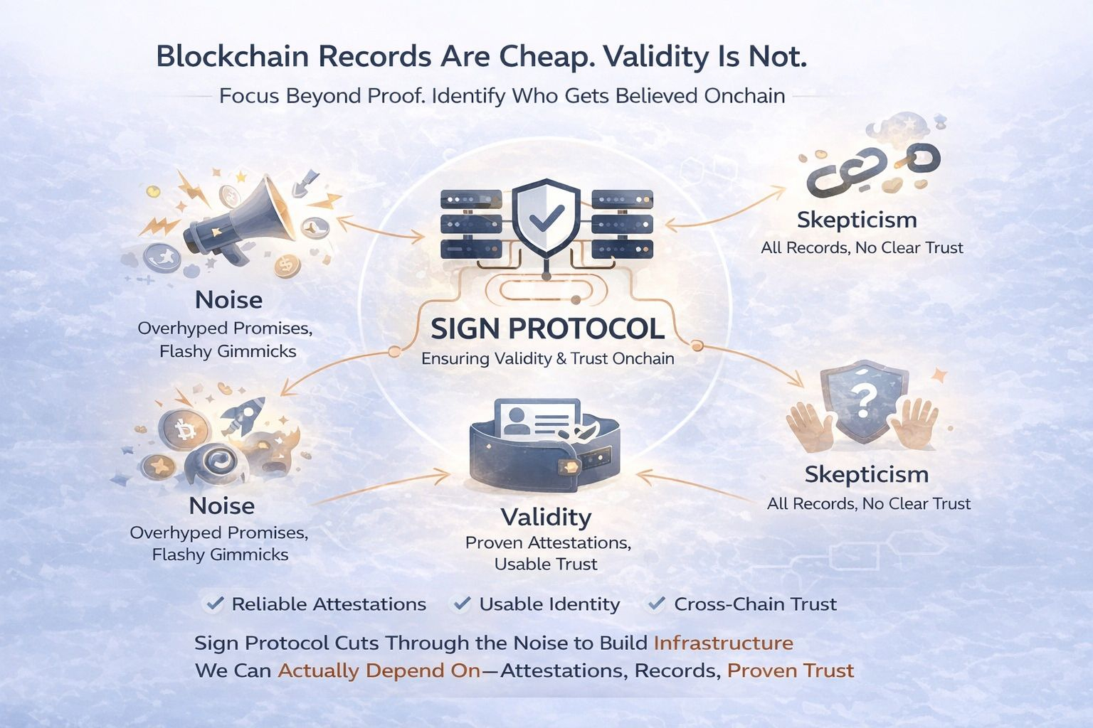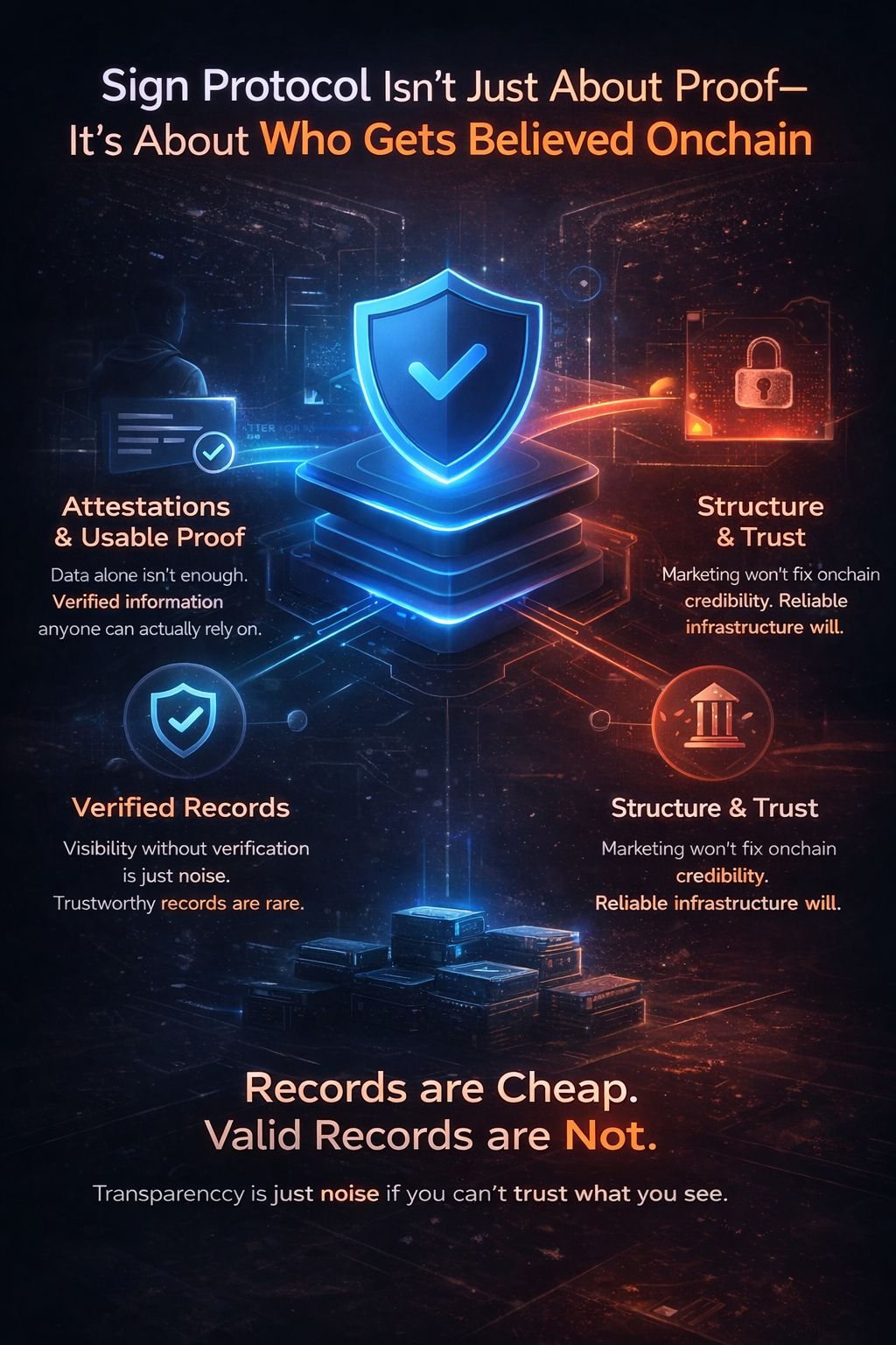 As the space scales—as digital identities get bigger, credentials multiply, and cross-chain activity explodes—we are all going to realize one simple truth: Records are cheap, but valid records are not. A lot of crypto still behaves like visibility is enough. But transparency without structure is just noise. It's clutter pretending to be clarity. Sign Protocol feels like it’s aiming right at that gap, trying to make proof usable, not just visible.
