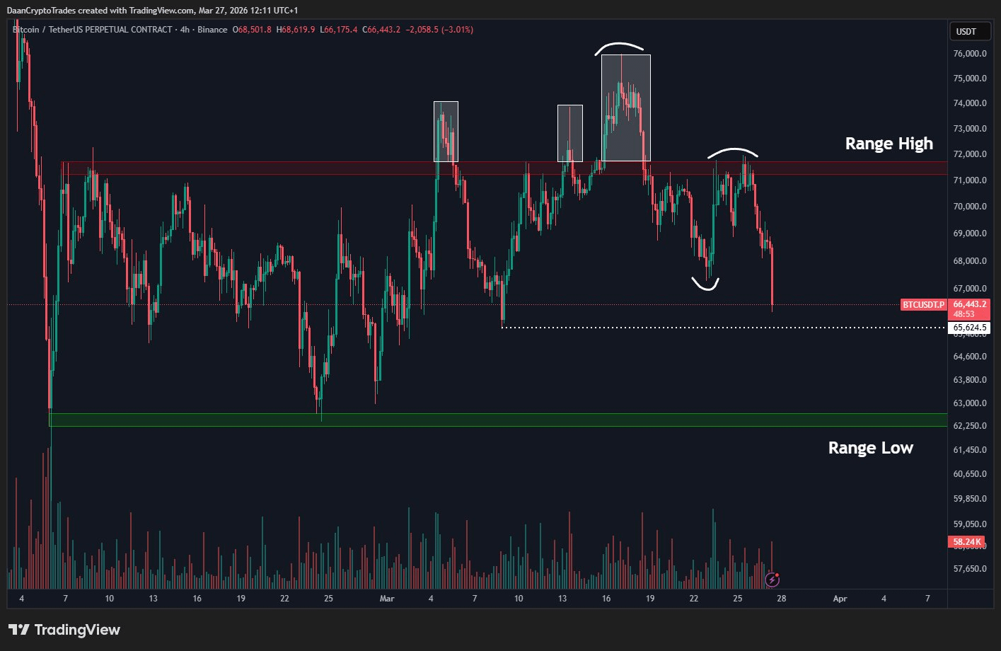 Gráfico de quatro horas do contrato perpétuo BTC/USDT. Fonte: Daan Crypto Trades/X