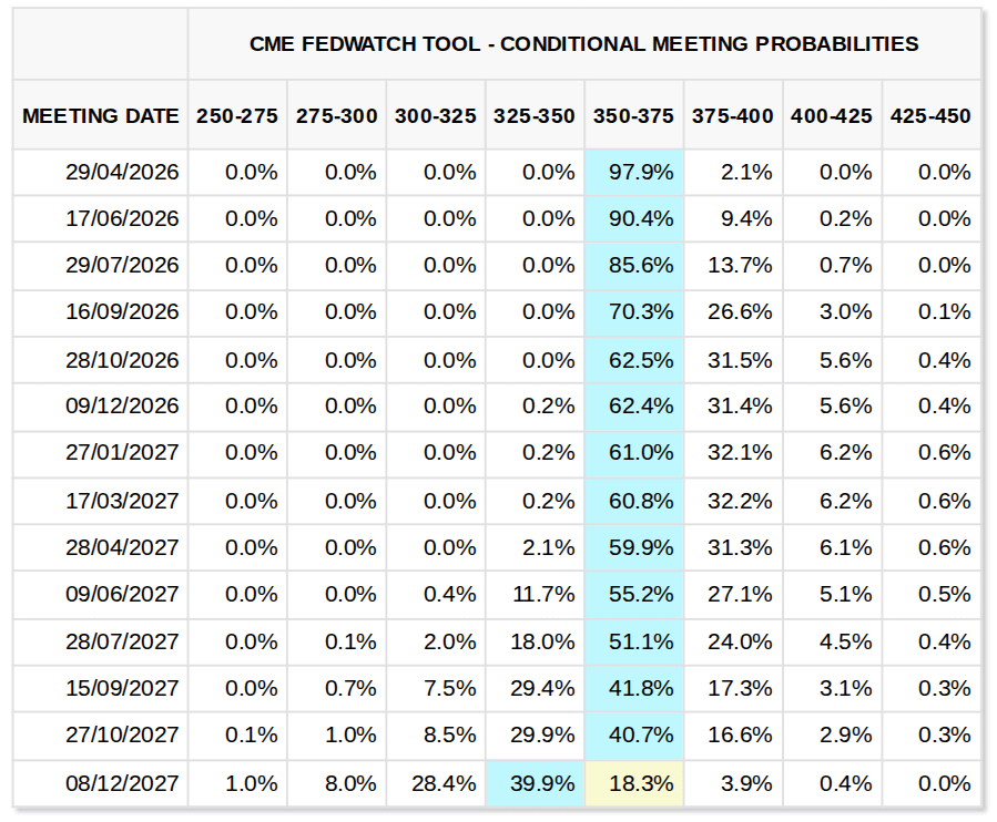 Probabilidades da taxa-alvo do Federal Reserve (captura de tela). Fonte: CME Group FedWatch Tool