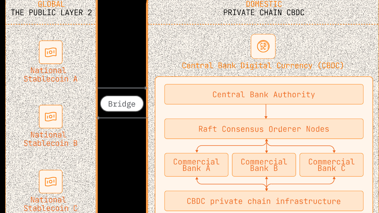 Built on a dual architecture, it combines a global Layer 2 for interoperability with domestic private chains for full sovereignty.