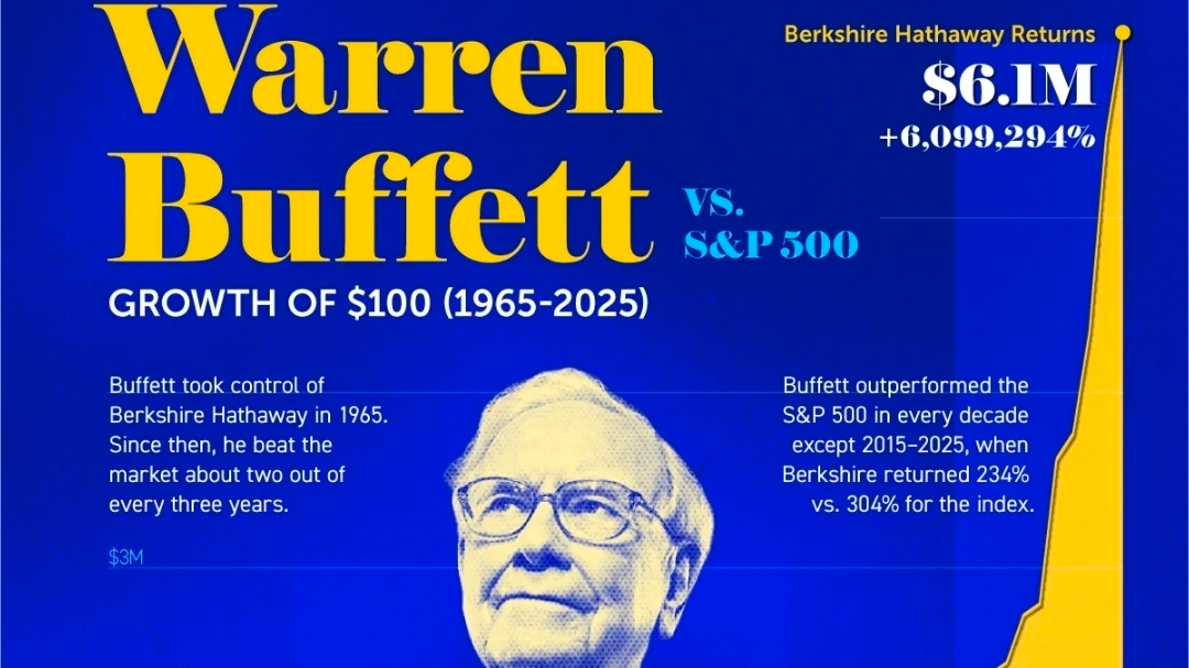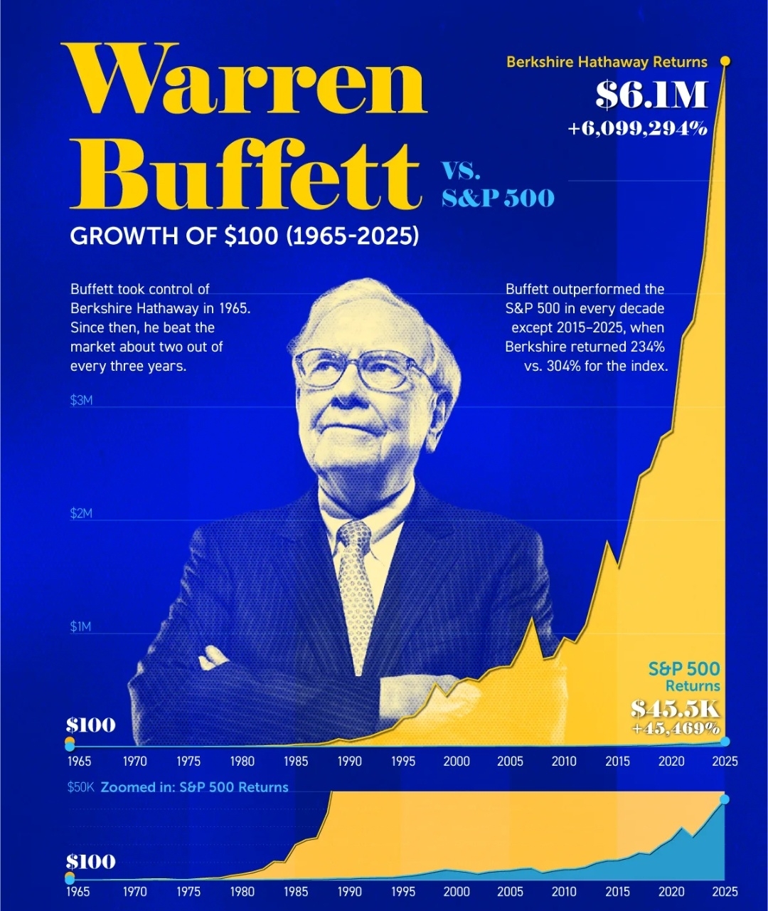 This chart highlights the extraordinary investment performance of Warren Buffett compared with the S&P 500 from 1965 to 2025.