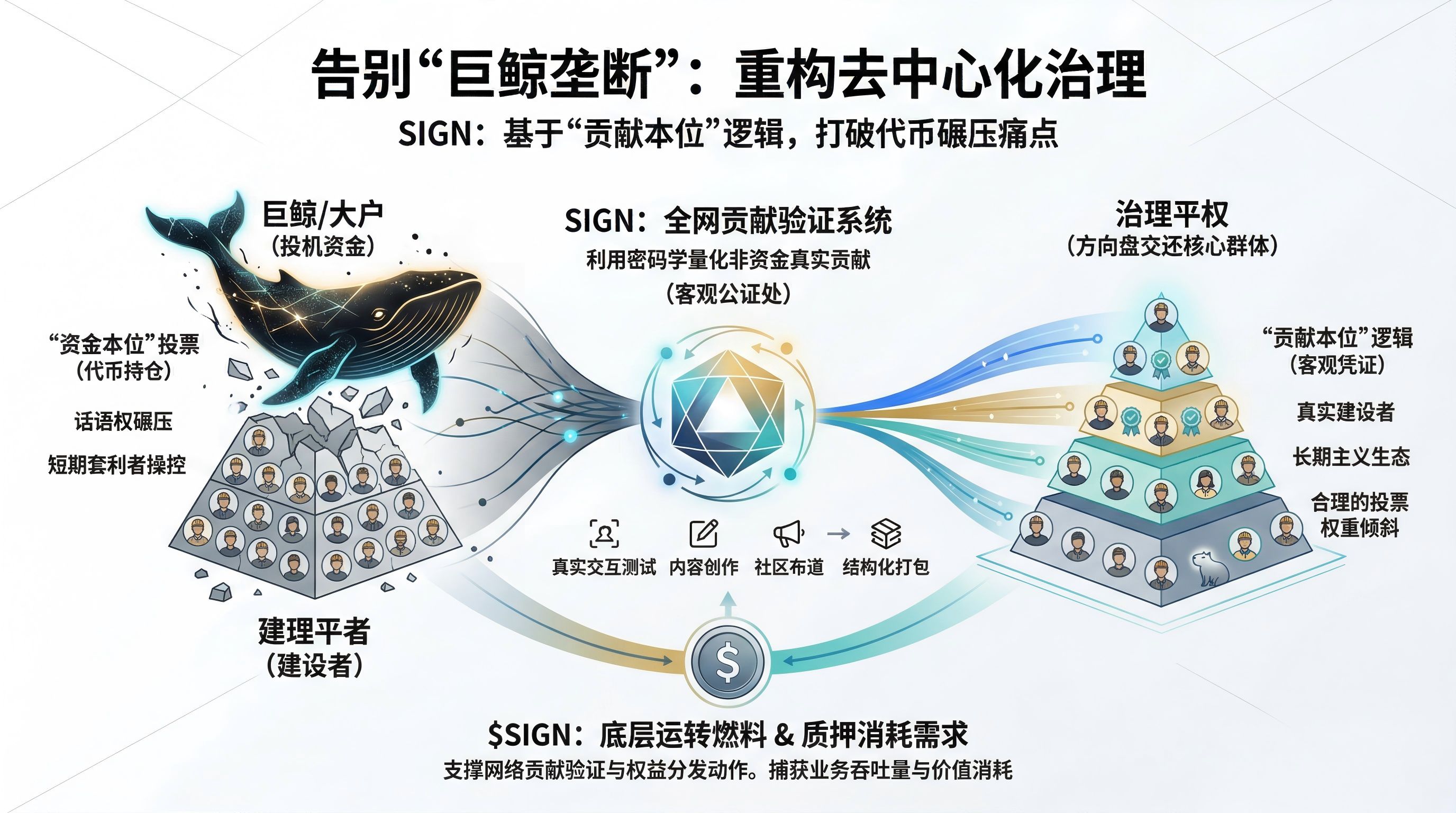 在 Web3 的发展历程中,去中心化自治一直是个核心愿景。然而现实中,绝大多数社区治理最终都演变成了资本的独角戏。按照传统的代币投票逻辑,一个单纯为短期套利而来的资金大户,其话语权往往能轻易碾压成千上万名真实的早期建设者。这种高度偏向资本的治理模型,正在持续消耗着开源生态的长期韧性。