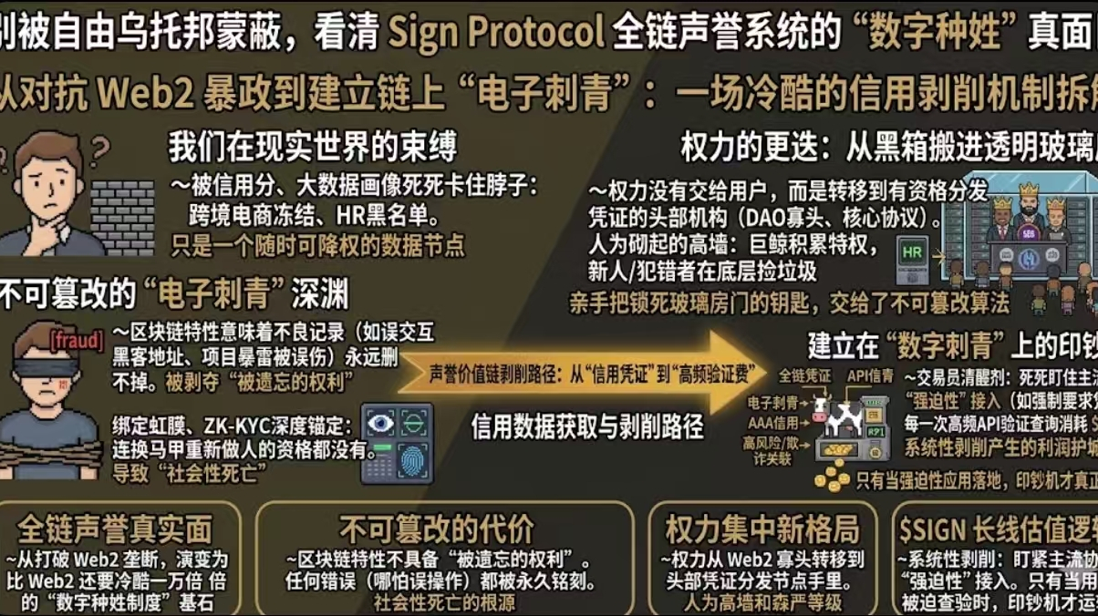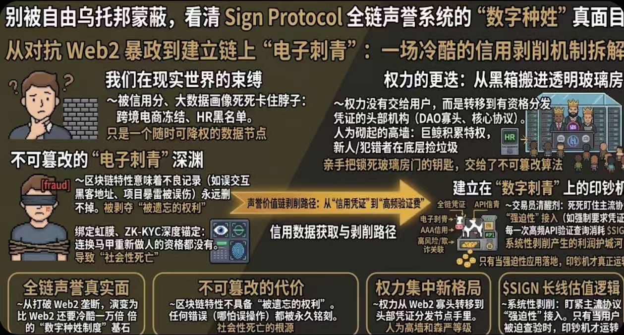 大家都觉得 Sign Protocol 是在帮你把数据从大厂的服务器里抢回来。这没错。但如果你顺着它的逻辑推演到极致,你会发现,它真正构建出来的,根本不是什么自由的乌托邦,而是一套比 Web2 还要冷酷一万倍的“数字种姓制度”。