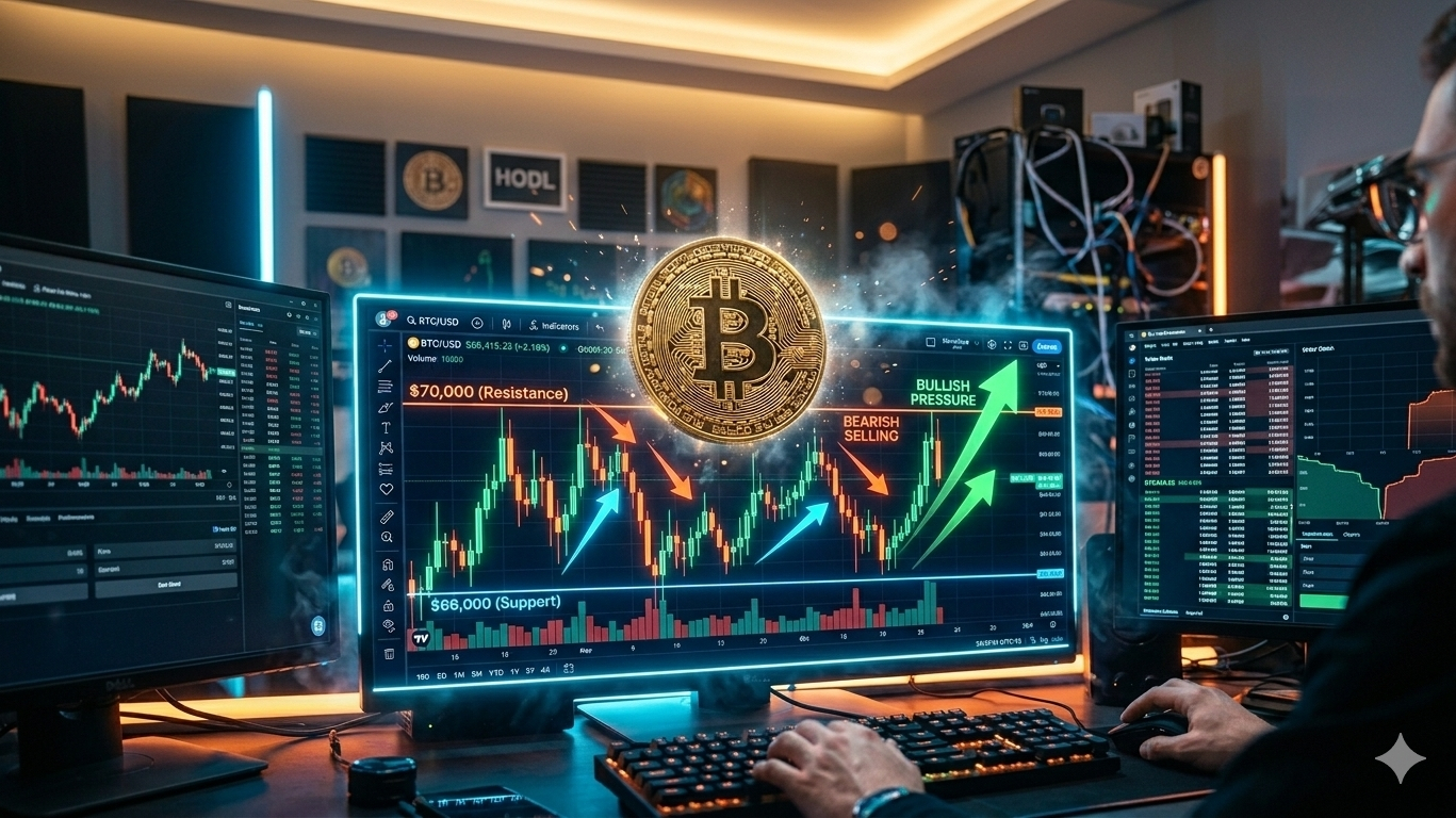 Right now, Bitcoin is trading around the $66K–$70K zone, and the market is locked in a tight battle. �