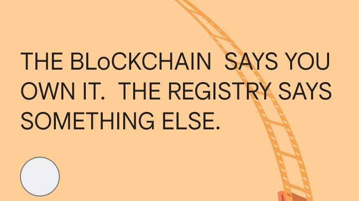 in the sync gap window a buyer completing a transfer onchain holds a blockchain record of ownership and no corresponding registry entry. They cannot prove ownership to a bank, a court, OR any government office that treats the registry as the legal source of truth. The blockchain record is technically correct and legally invisible at exactly the same moment. If the registry updates first and the onchain record lags, someone could potentially sell a property based on a registry record the blockchain has not yet caught up with. Dual records. Dual claims. Neither system aware the other has a conflict.