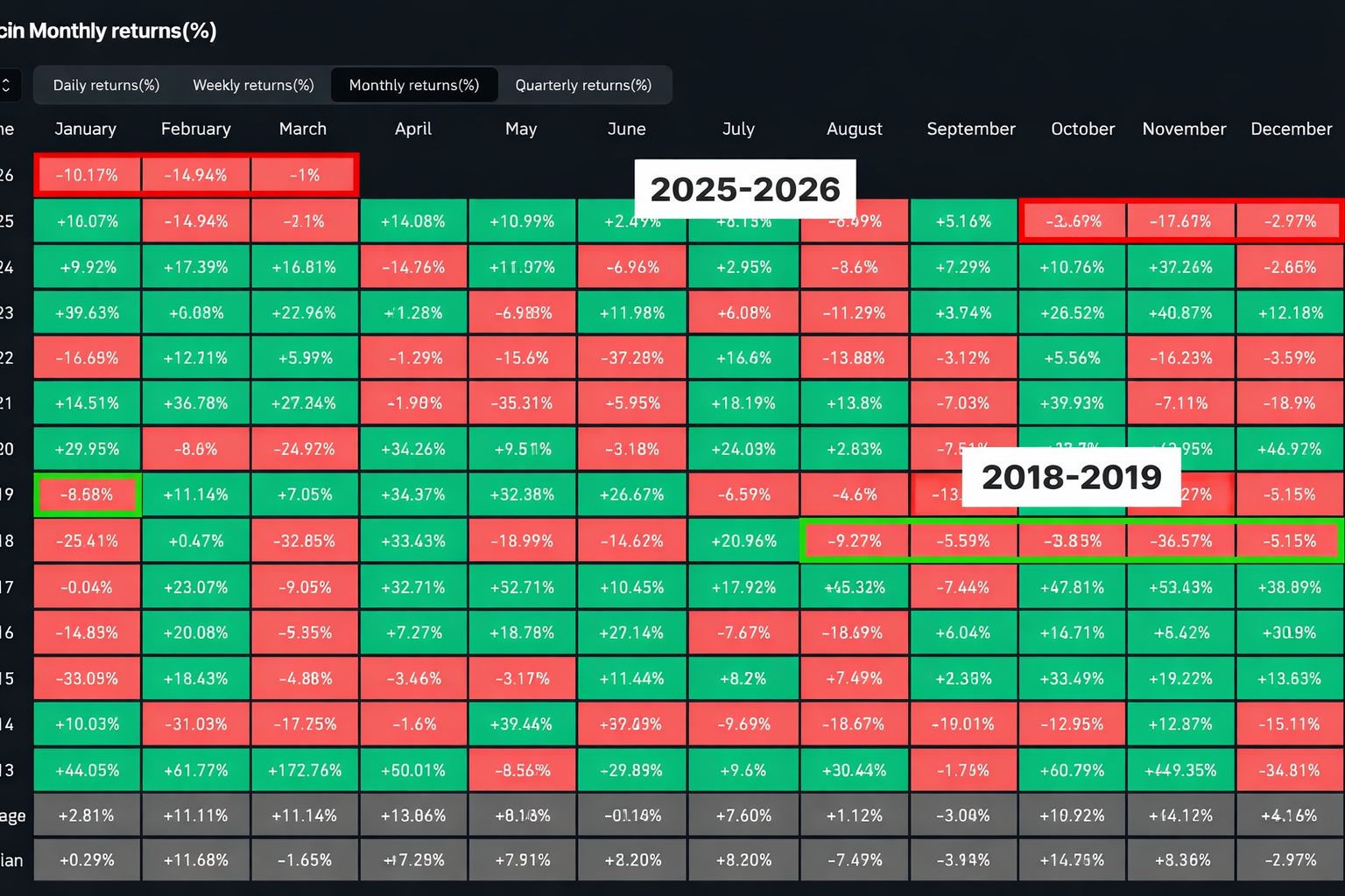È interessante notare che nella storia, casi simili sono apparsi chiaramente solo una volta nel periodo 2018–2019. Allora, dopo una serie di mesi di debolezza prolungata, Bitcoin ha sorprendentemente iniziato un forte rimbalzo, passando da $3.4K a $13.9K.