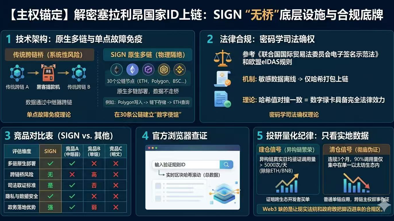 最近关于@SignOfficial SIGN最火的新闻,是塞拉利昂政府把国家级的数字身份证部署在了它的网络上。广场上很多人嗤之以鼻,觉得又是花钱买的主权合作PPT。主权国家真的会把国民核心数据交给一个随时可能被黑客盗库的跨链桥吗?我没那么好骗。我直接去跑了它的测试网,翻了联合国的电子签名法案。查证完后我才发现,散户还在用炒土狗的思维看它,而它已经在做主权锚定的底层设施了。