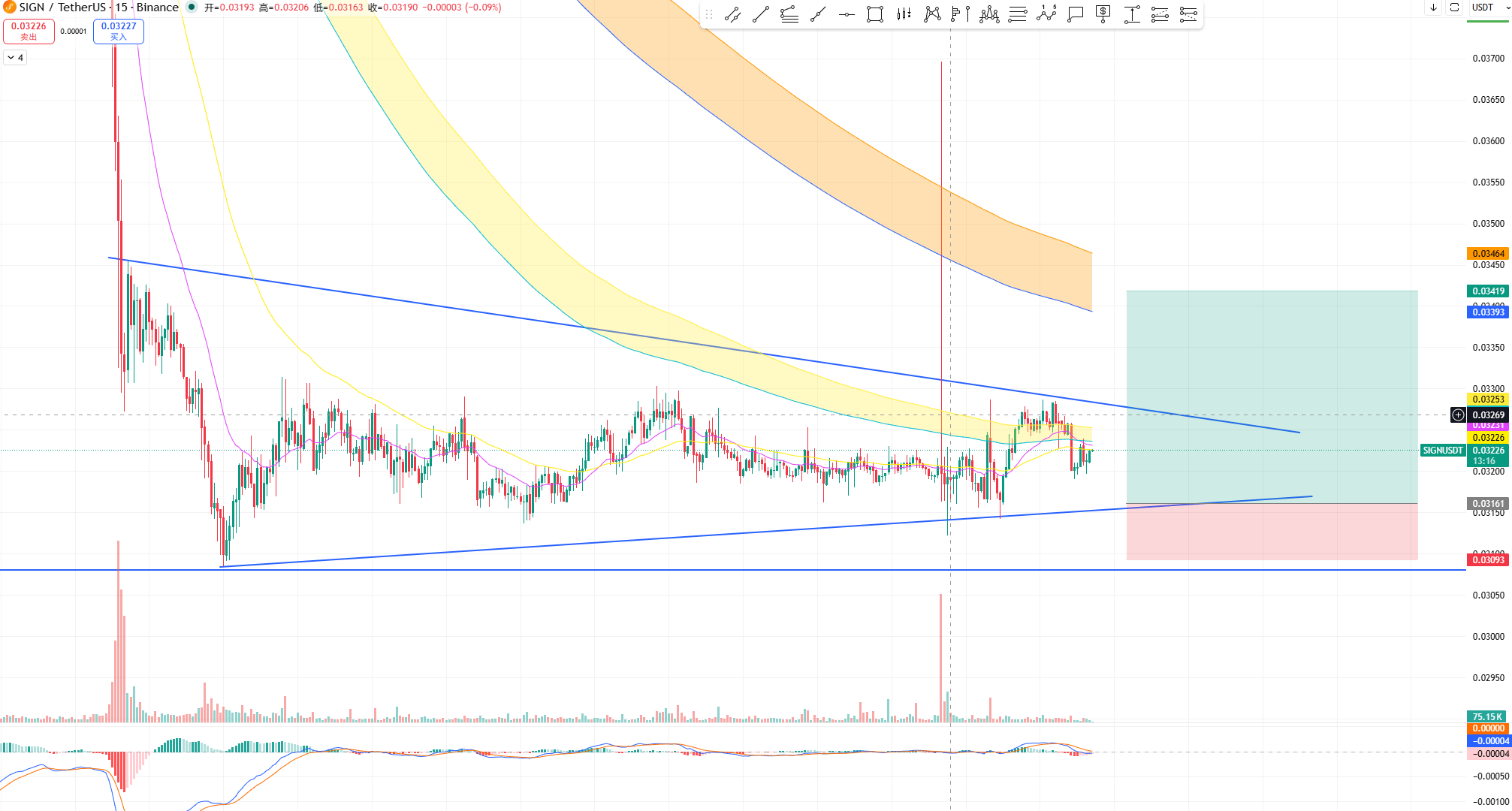 先说数据,不然容易聊飘。现在 $SIGN 大概在 0.03 附近晃,流通十几亿,成交量能到几千万美金。听起来还行,对吧?