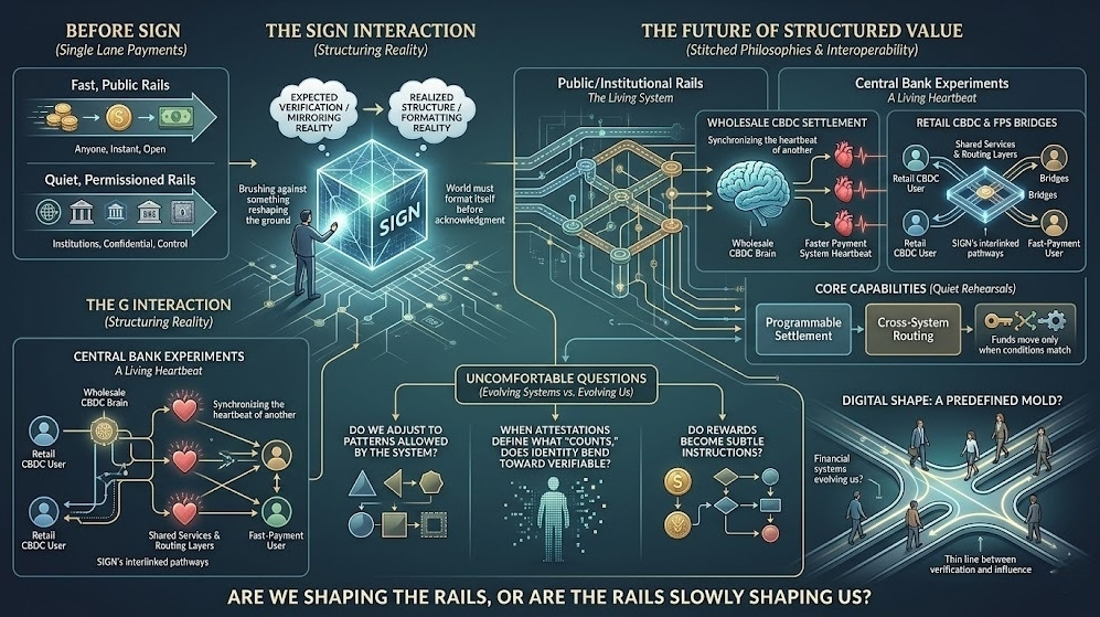 E quando guardo le CBDC che si connettono attraverso i ponti FPS, e SIGN che aiuta a plasmare le richieste strutturate e la verità programmabile, la linea tra verifica e influenza diventa più sottile che mai. Mi fa chiedere se i sistemi finanziari stiano evolvendo... o se ci stiano evolvendo silenziosamente.