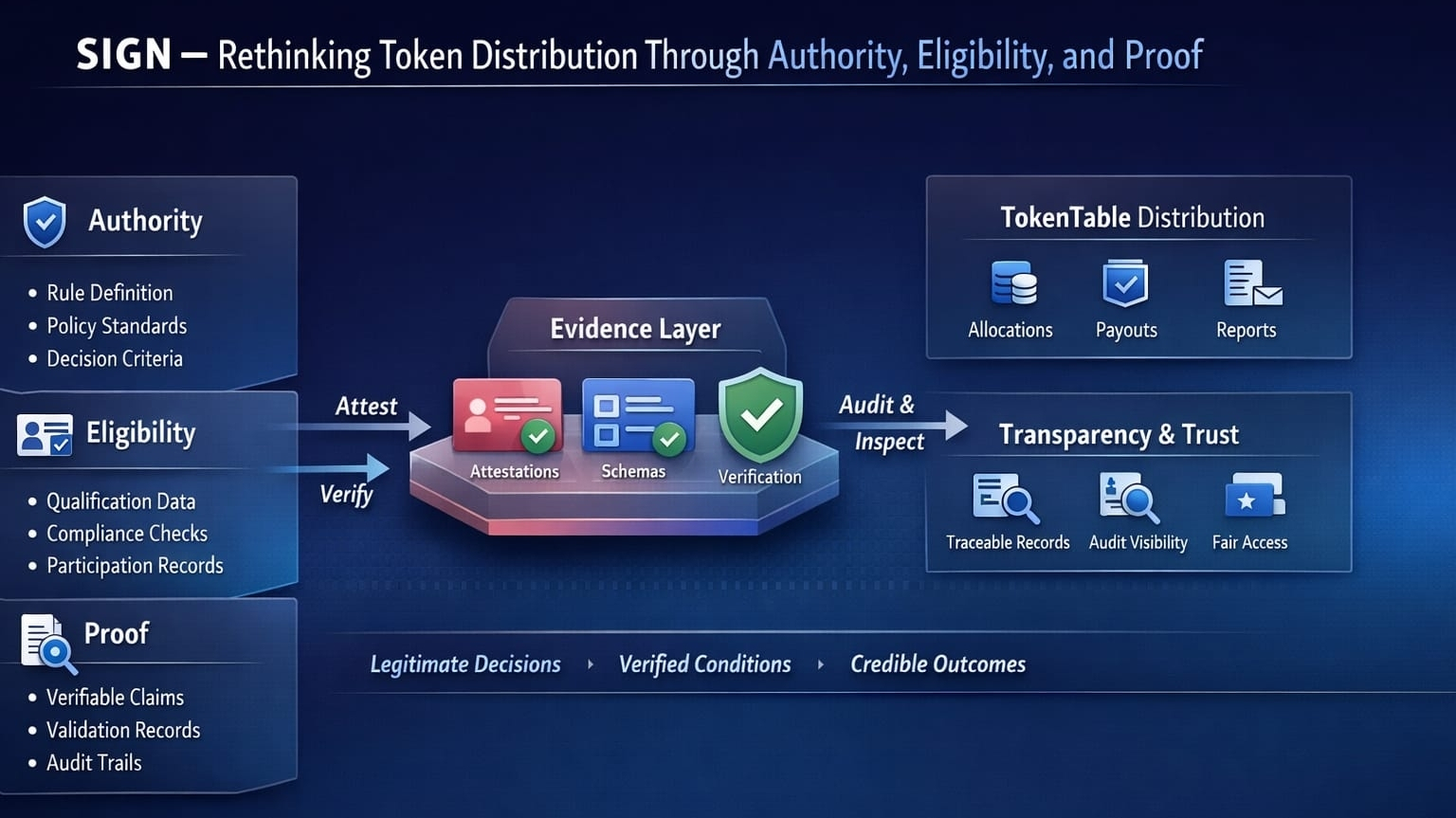 Quindi quando guardo Sign, non vedo principalmente un progetto che aiuta i team a distribuire token in modo più efficiente. Vedo un progetto che affronta il fatto che la distribuzione è sempre stata una questione di legittimità mascherata da logistica. Questo è il motivo per cui mi sembra importante. Sta guardando direttamente al livello che la maggior parte delle persone salta. Il livello in cui l'autorità deve diventare responsabile. Il livello in cui l'idoneità deve diventare dimostrabile. Il livello in cui l'equità deve diventare più di una semplice affermazione.