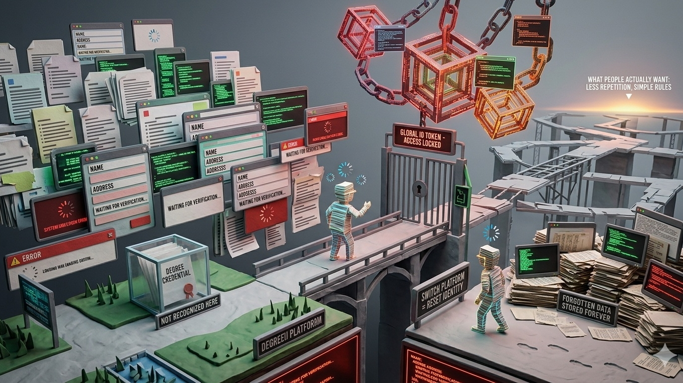 Every platform acts like it’s the only one. Like you’ve never existed before. Same name. Same ID. Same details. Enter it again. And again. Nothing carries over.