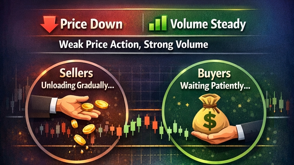 Se questa fosse una vera debolezza, il volume si prosciugherebbe. Ma qui, l'attività è ancora alta, il che significa che il mercato è attivo, solo non rialzista.