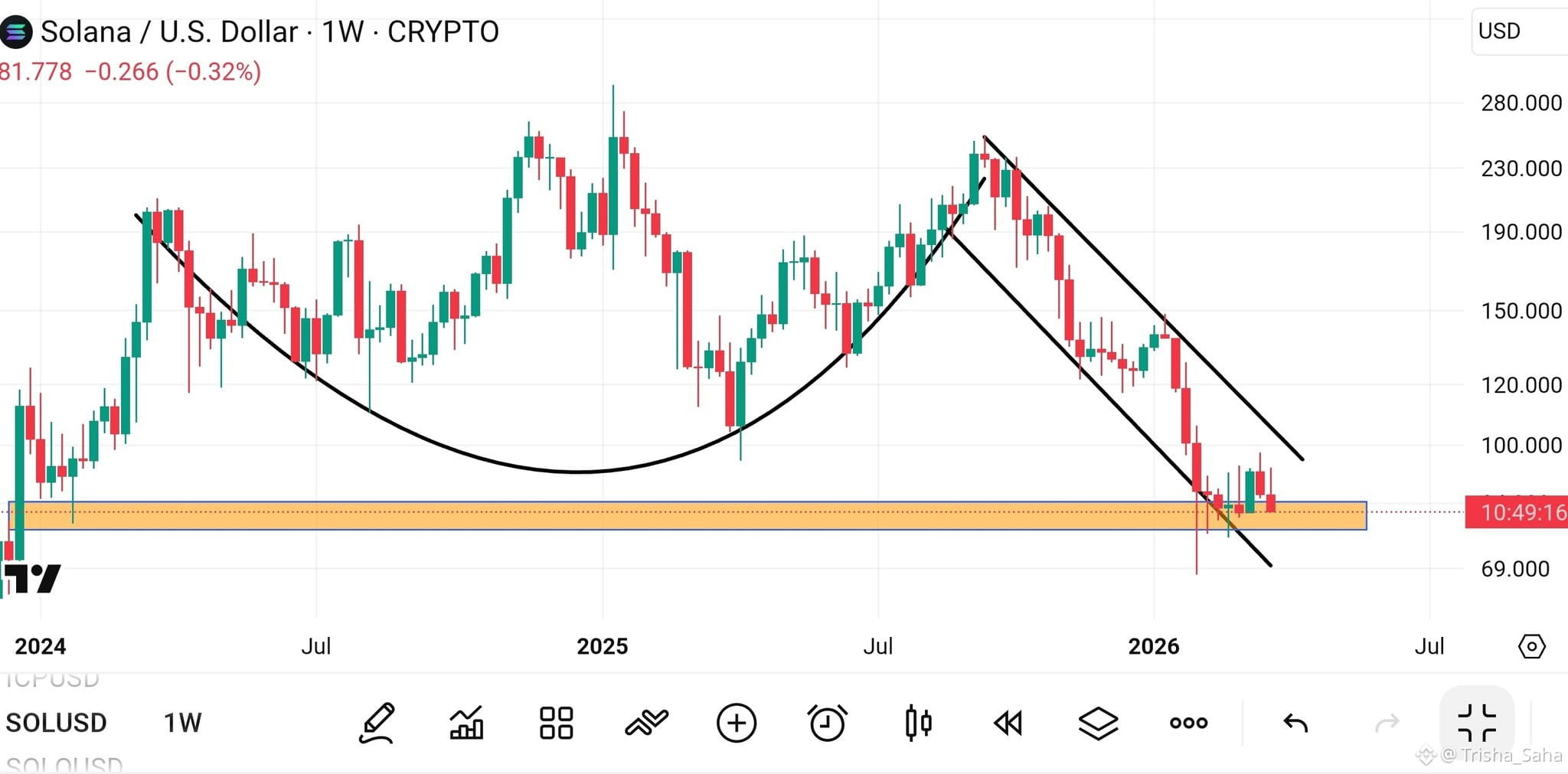 Il prezzo attuale (81$) è un prezzo "aggregato" per gli investitori a lungo termine che credono nel progetto Solana, poiché il rischio rispetto al guadagno (Risk/Reward) in questa area è considerato eccellente. Tuttavia, è necessario prestare attenzione alle operazioni rapide "long" prima di vedere un chiaro segnale di rottura della canalizzazione discendente.