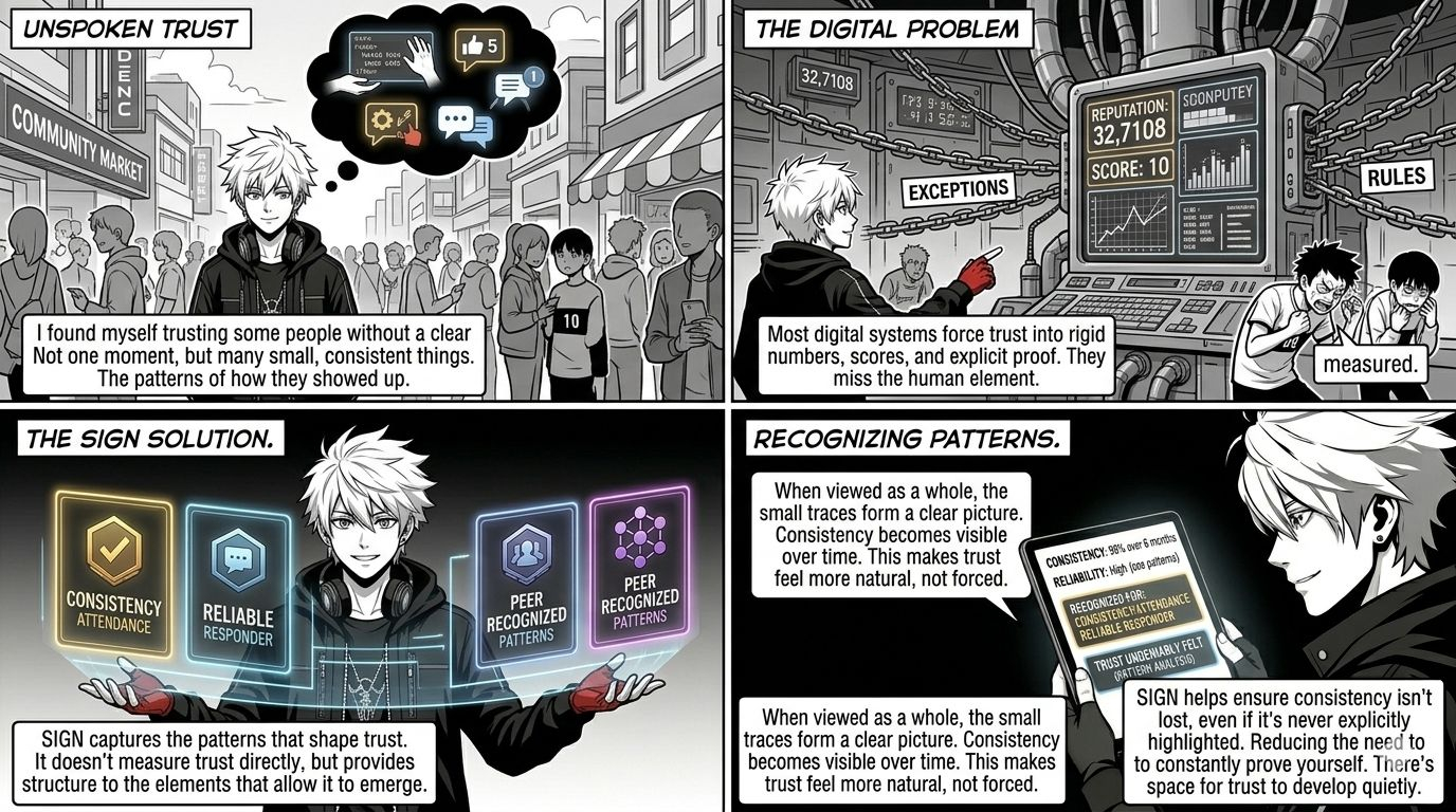 This is where I started to see SIGN moving in a different direction. Instead of trying to “measure trust” directly, it focuses on capturing the patterns that shape it. SIGN doesn’t declare who is trustworthy, but provides structure to the elements that allow trust to emerge.