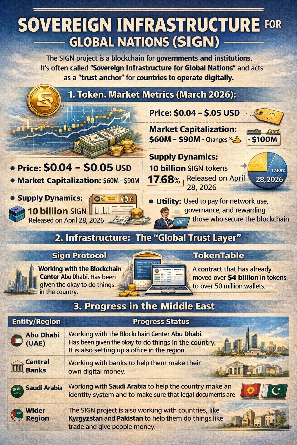 The SIGN project, often called "Sovereign Infrastructure for Global Nations" is a kind of blockchain that governments and institutions can use. It is like a " trust anchor" that helps countries do things digitally.
