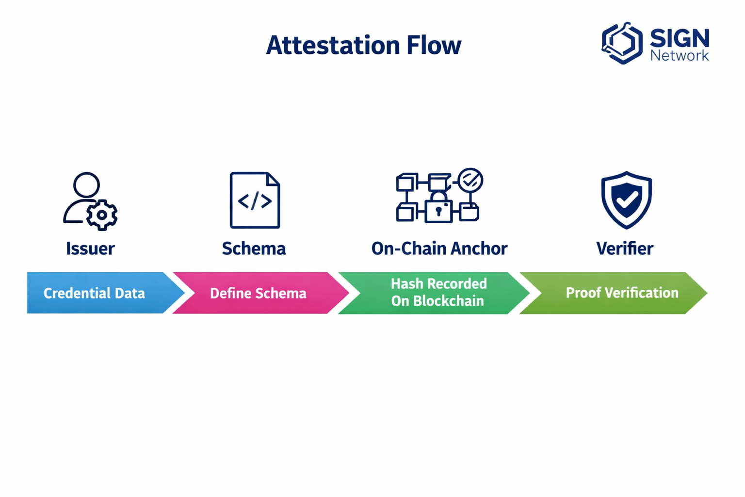 Attestations are defined through schemas. These schemas standardize what a claim represents, how it is issued, and how it can be interpreted across systems. This allows attestations to be reused rather than recreated, forming a consistent layer of verifiable context.