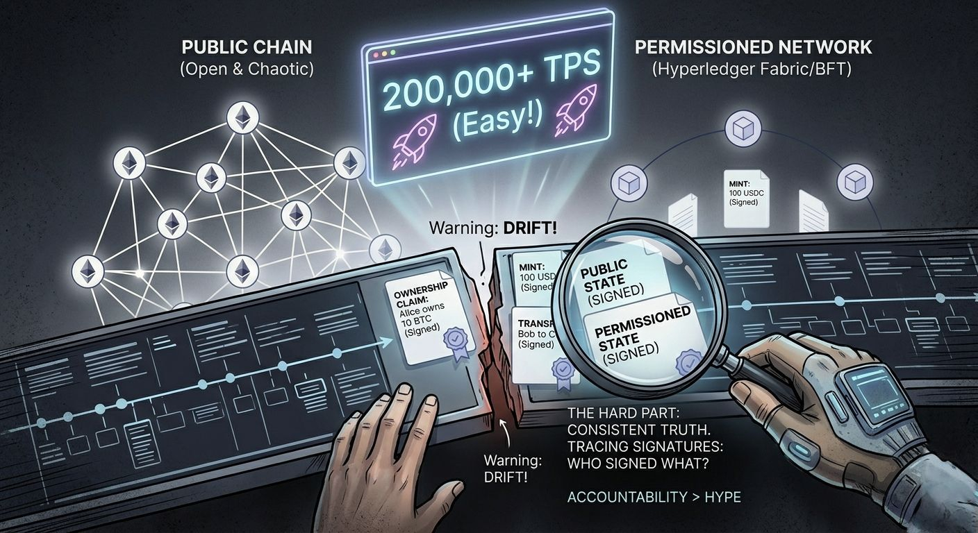 But let’s be real throughput numbers don’t impress me by themselves. What matters is whether the signed states stay consistent across both sides. If the public view and the permissioned view ever drift? That’s when things get messy.